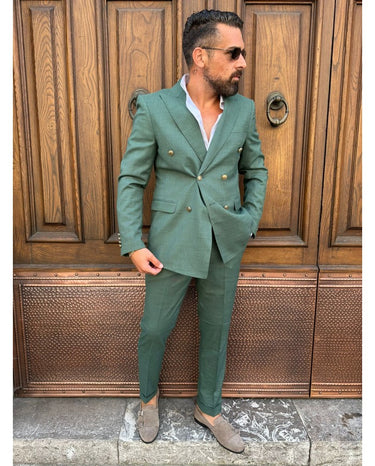 abito sartoriale doppio petto verde militare bottoni oro q1