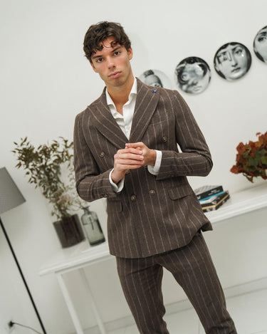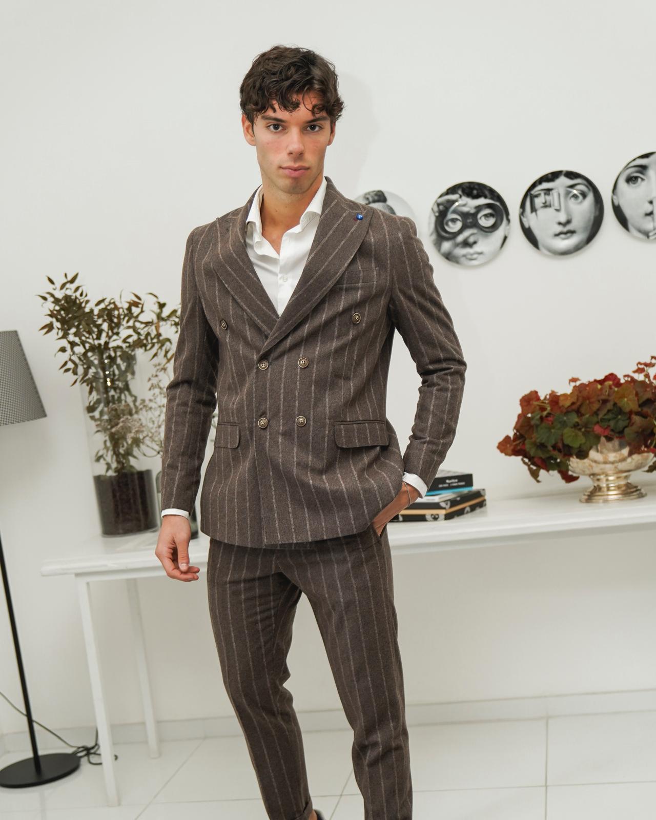 abito doppio petto sartoriale marrone gessato riga larga art gioello