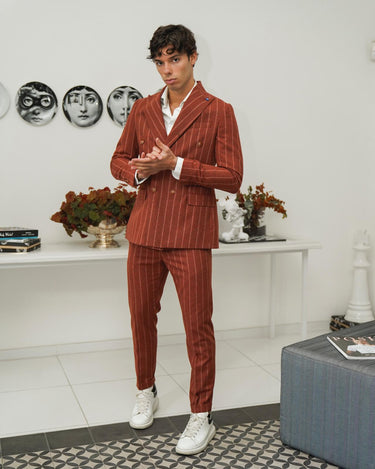 abito doppio petto sartoriale arancione gessato riga larga art gioello