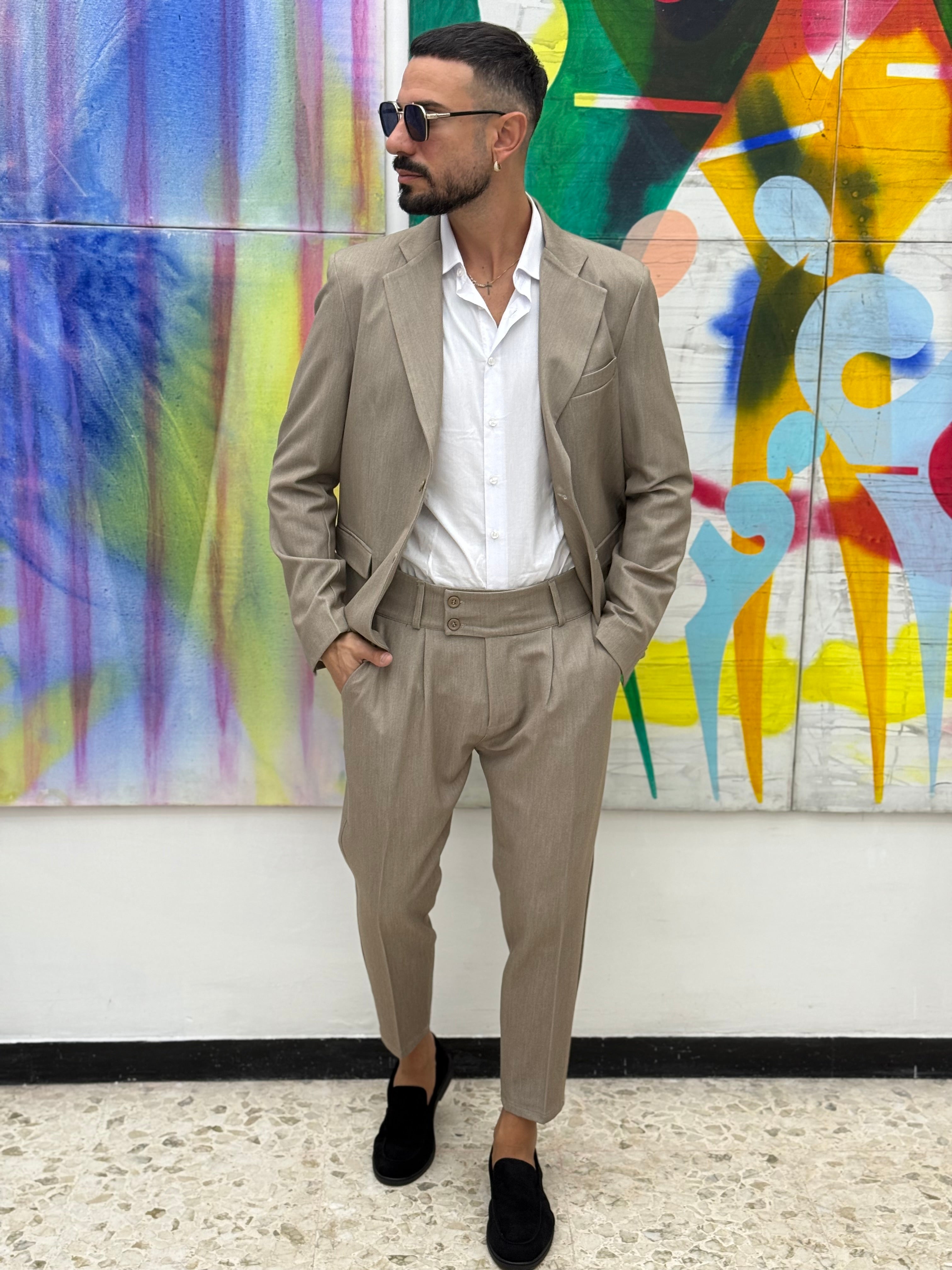 Esplora il tuo lato audace con l'abito monopetto Firenze . La vestibilità slim fit ti dà un tocco di eleganza con il suo pantalone Vita alta , mentre i vari colori disponibili aggiungono un tocco di personalità. Preparati a sfidare il tuo stile con questo abito unico! NELLA FOTO INDOSSA UNATG 48 PORTANDO 46 REGOLARE DI PANTALONE