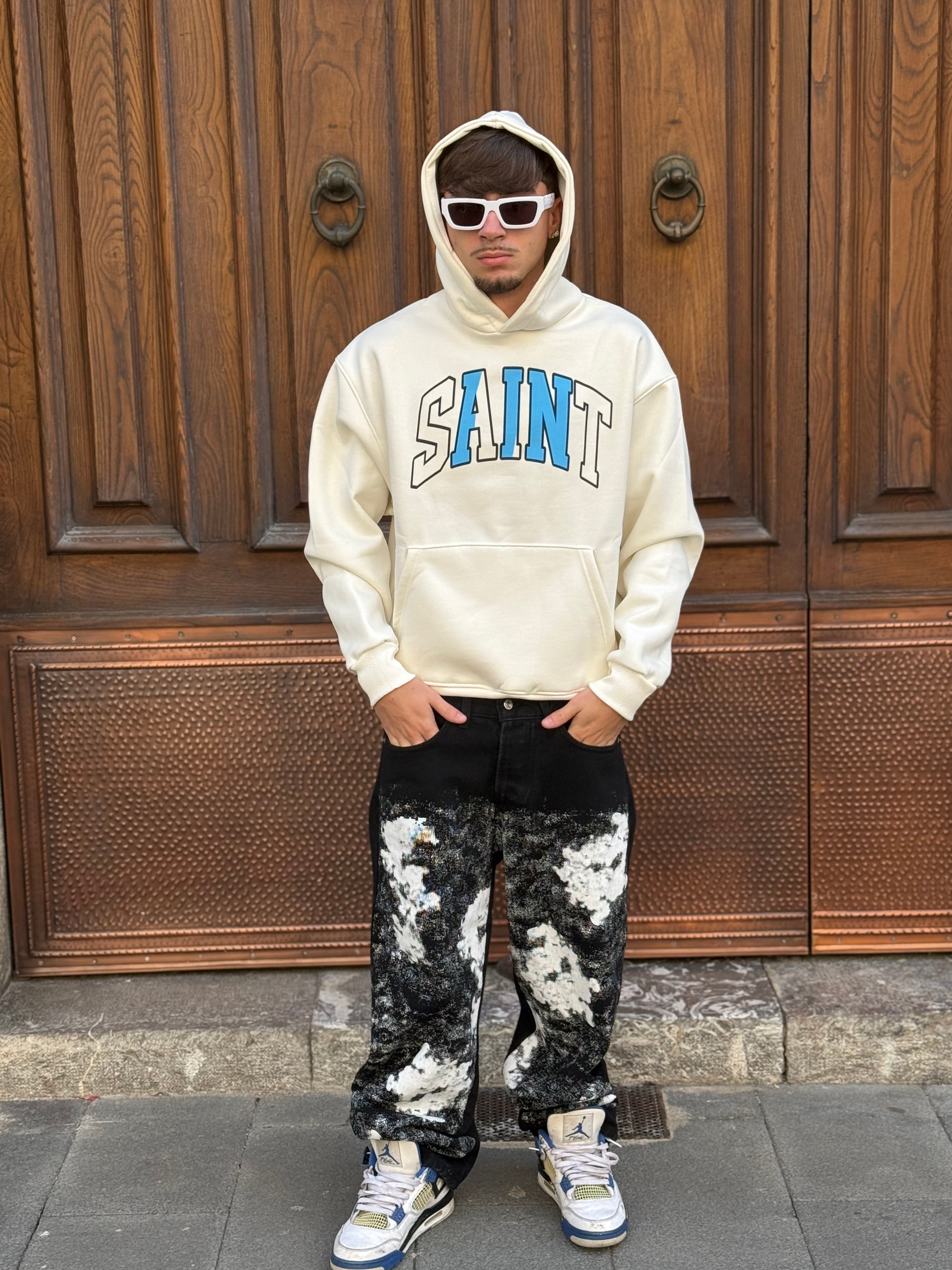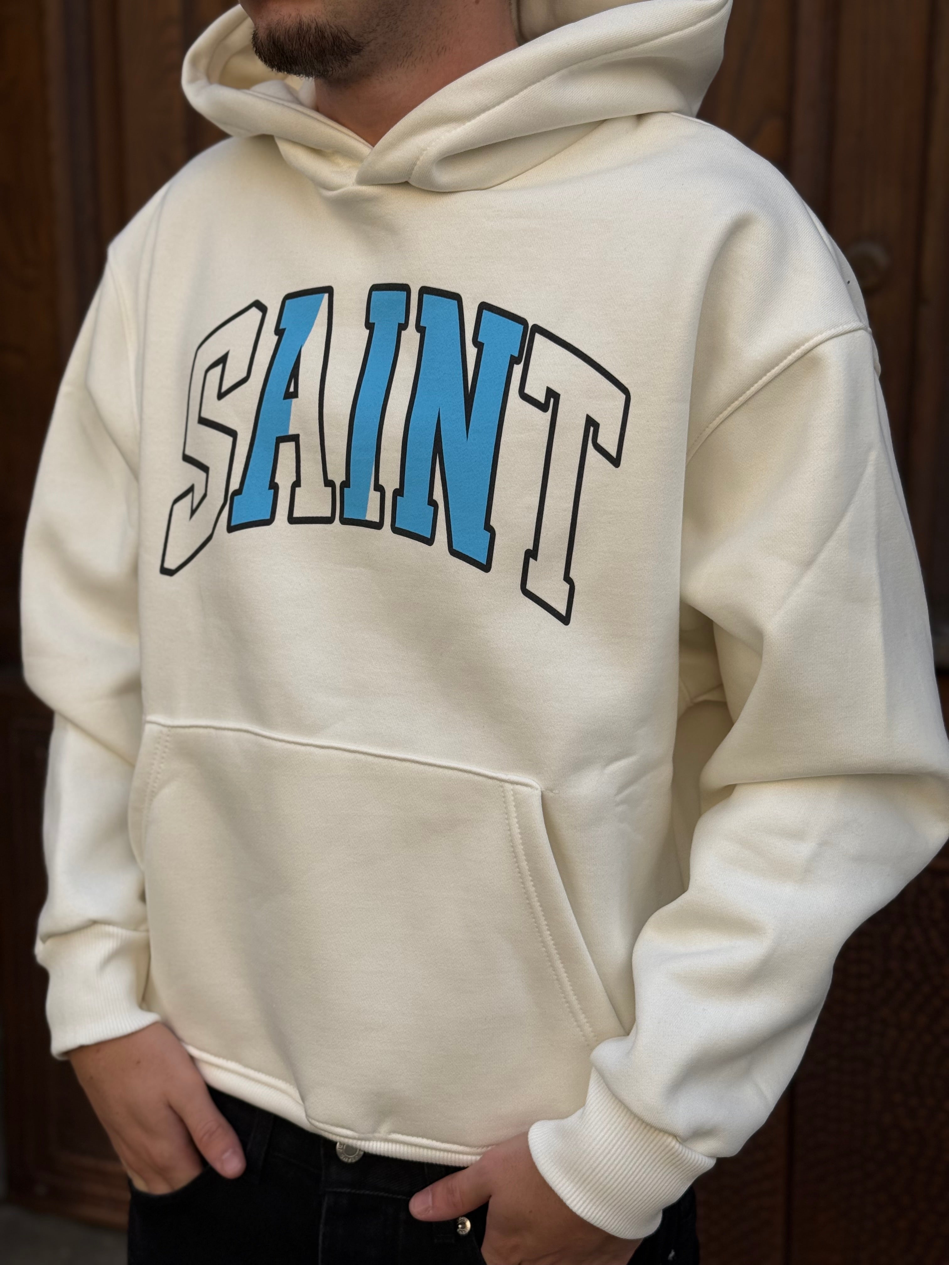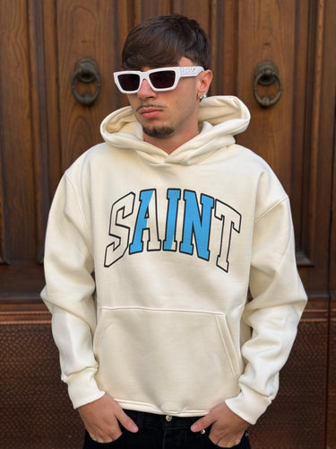 Felpa bianca SAINT logo blu con cappuccio boxy fit made in italy