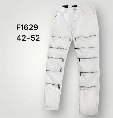 Jeans biker bianco multi zip art David f1629