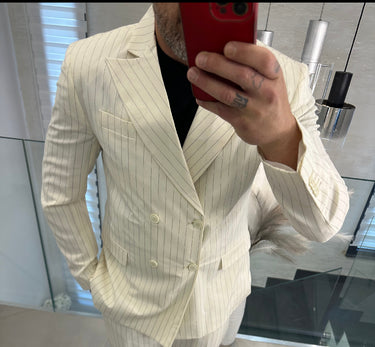 Giacca doppio petto bianco gessato riga nera ornoir q1