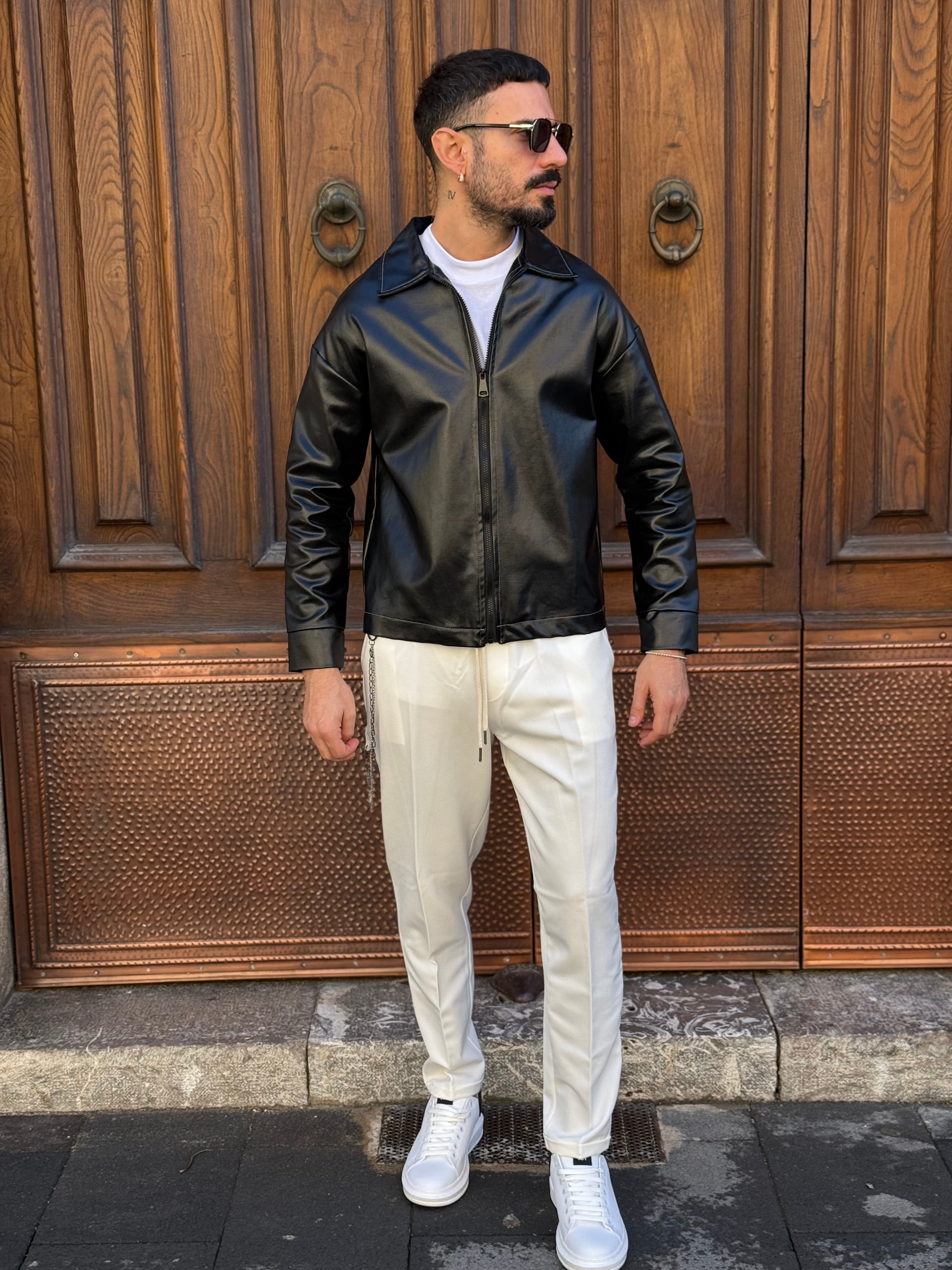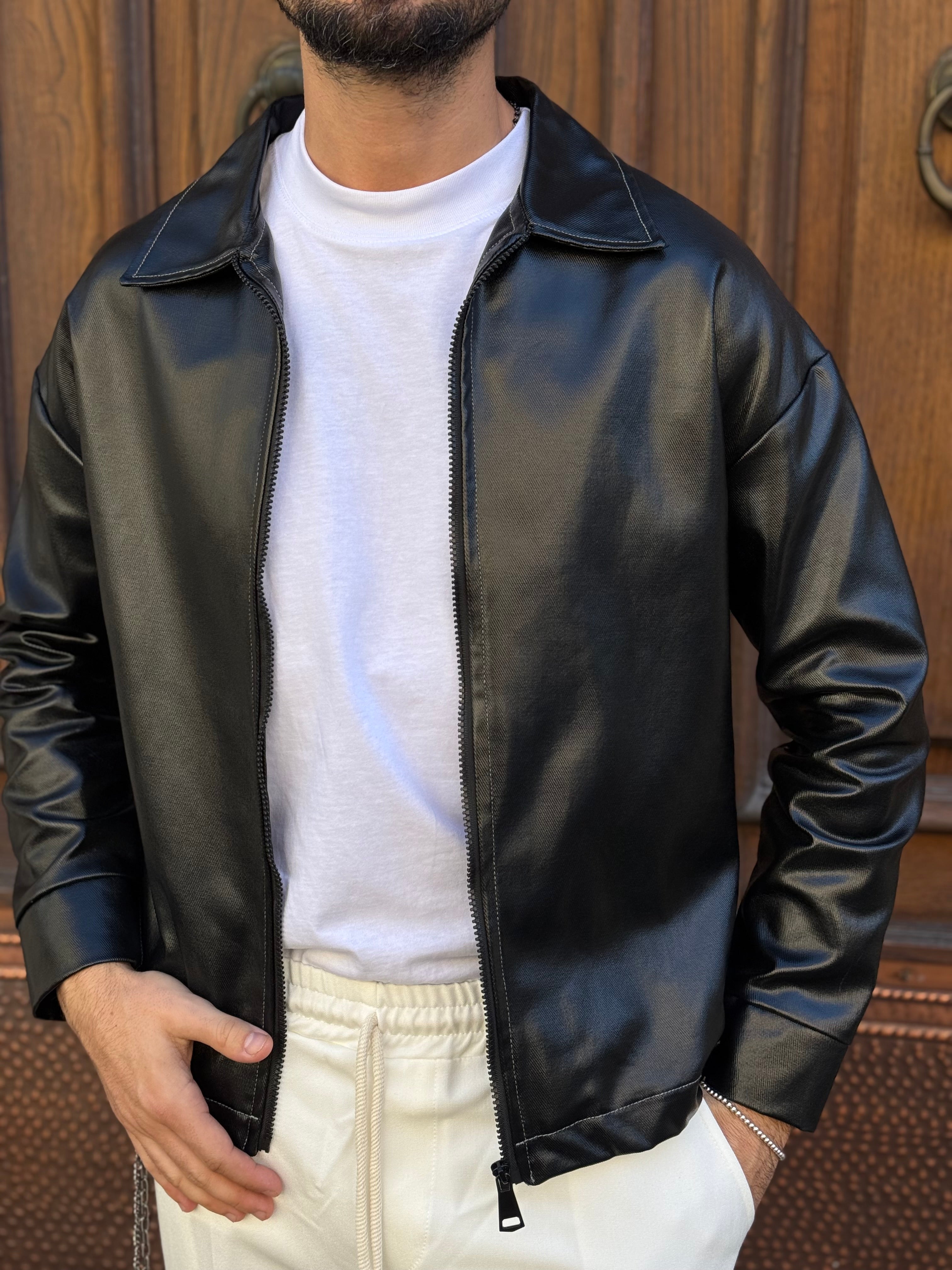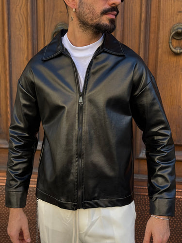 giacca giubbino eco pelle nero con zip e colletto uomo q1
