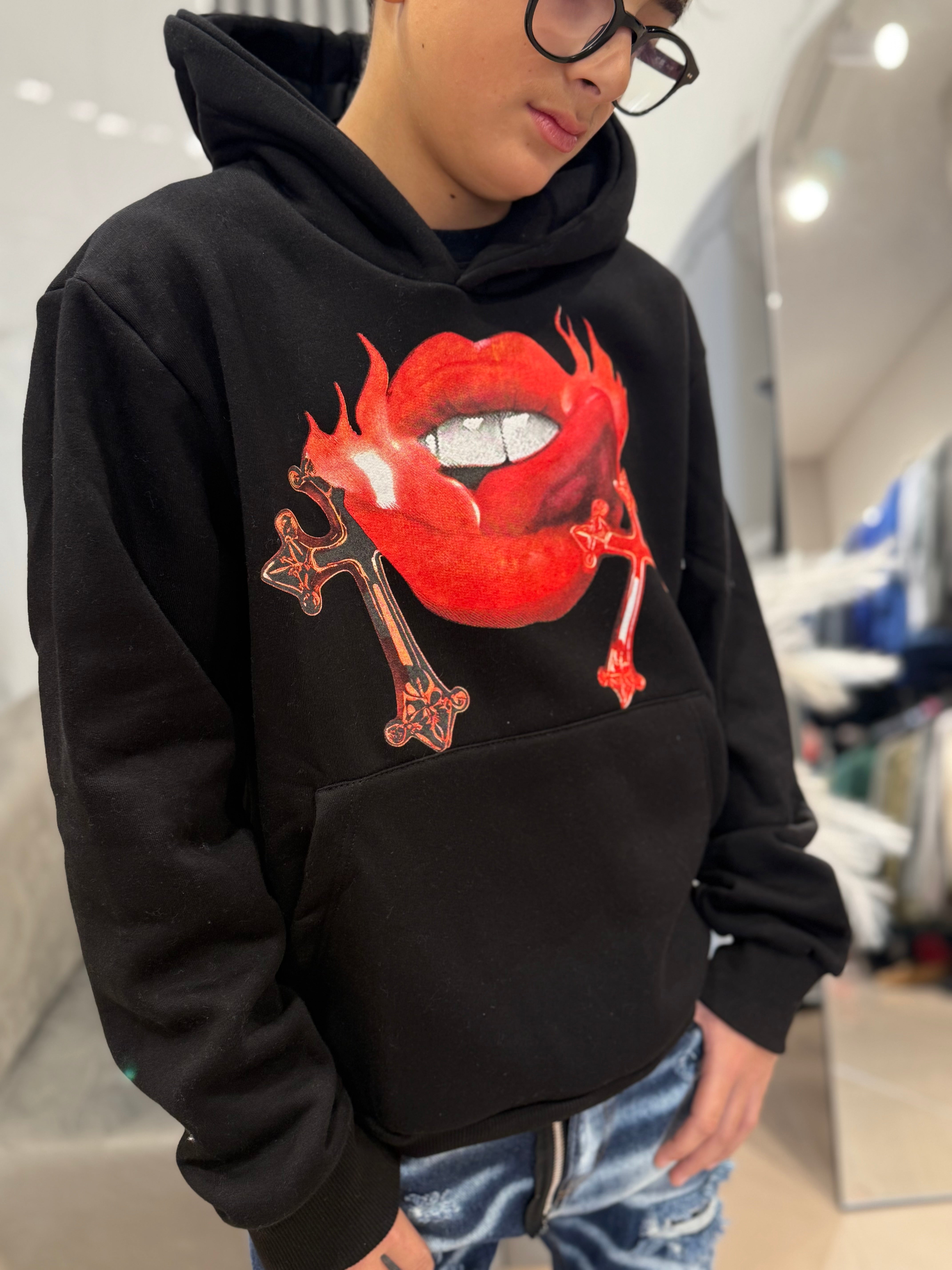 Felpa rossa zip DIAMOND Brillantinata con capuccio boxy fit made in italy €29,99 /Scegliere le opzioni
