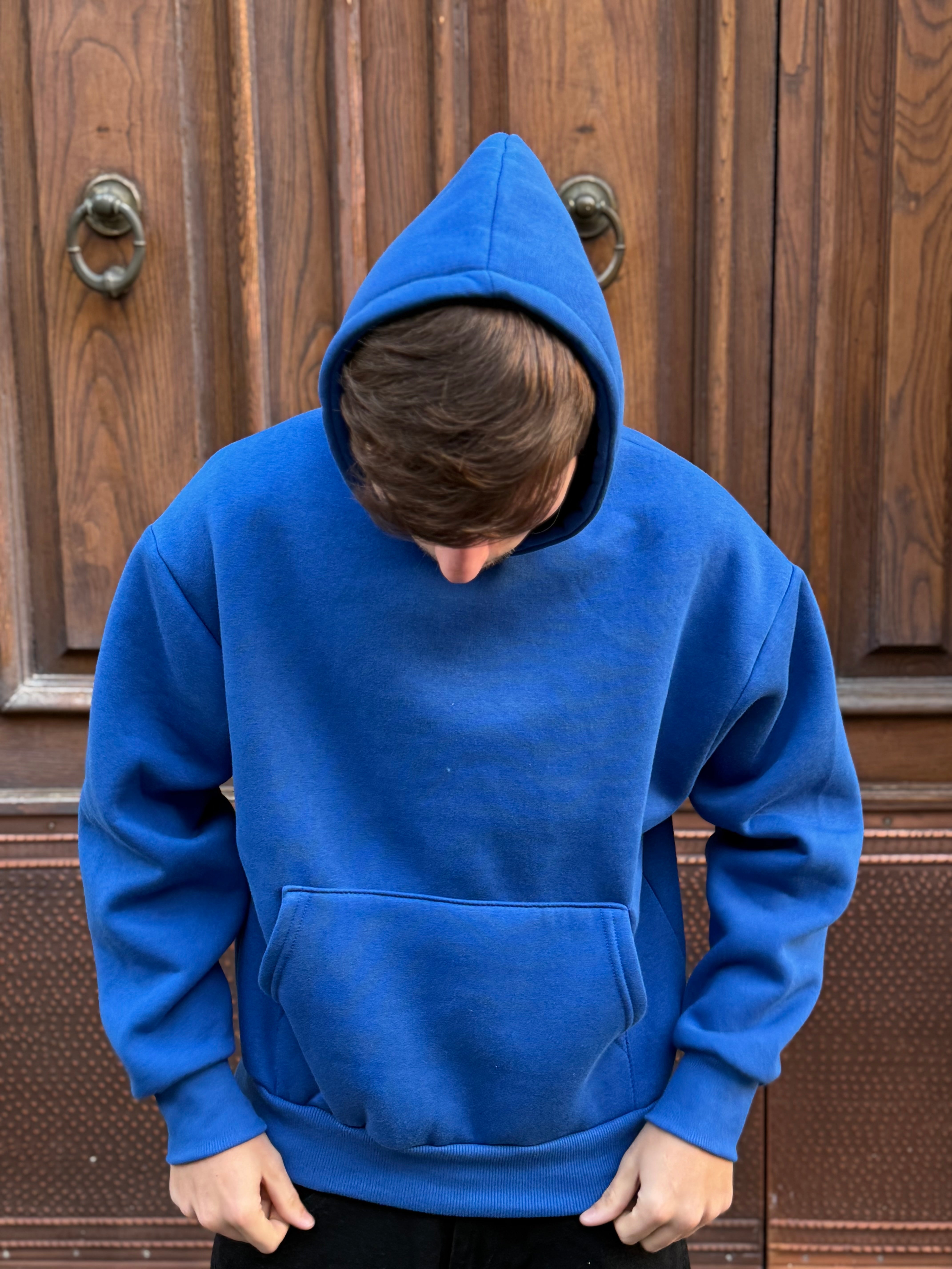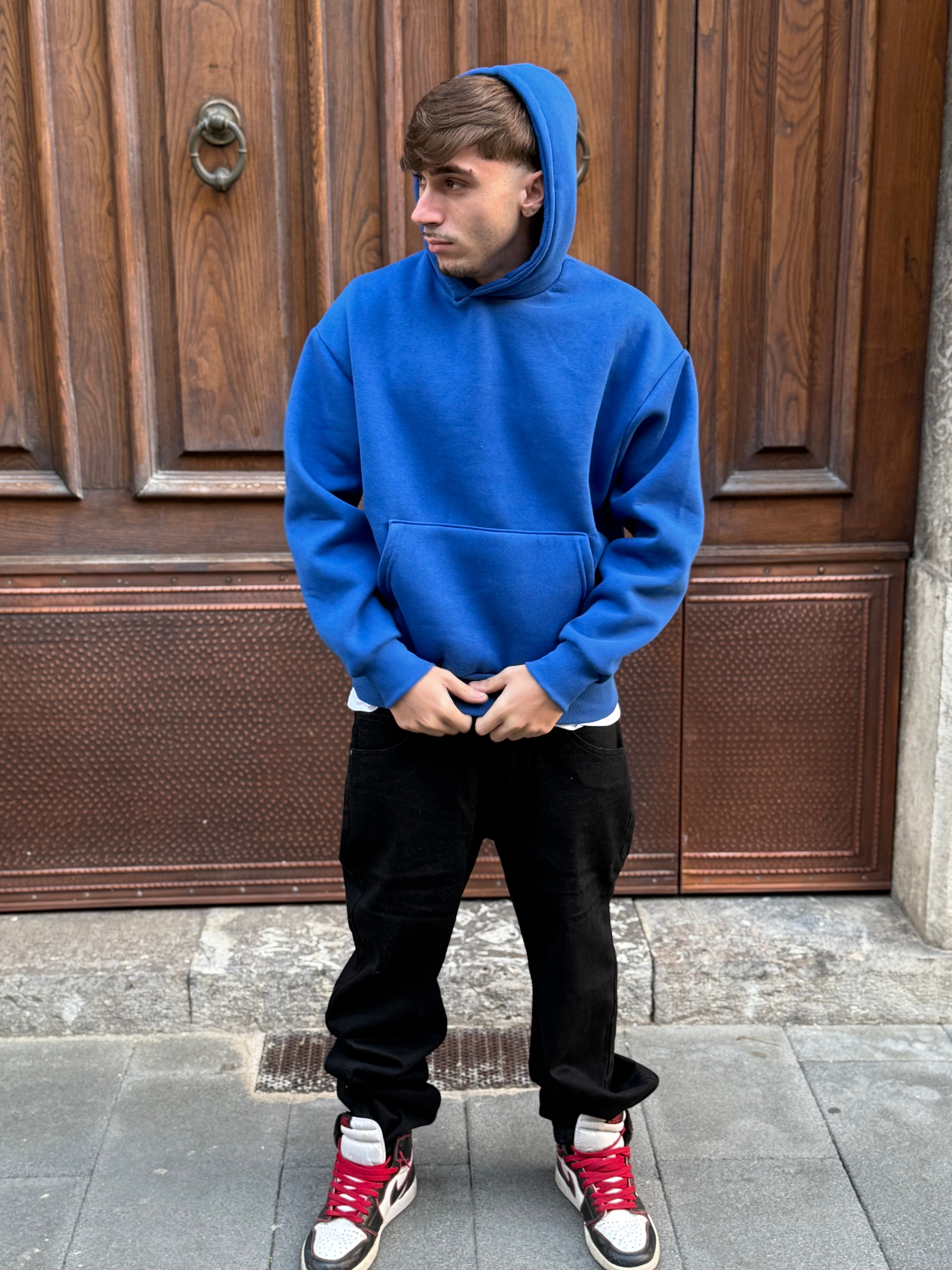 Felpa con capuccio blu royal boxy fit made in italy