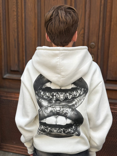 Felpa bambino zip con capuccio boxy fit logo bocca
