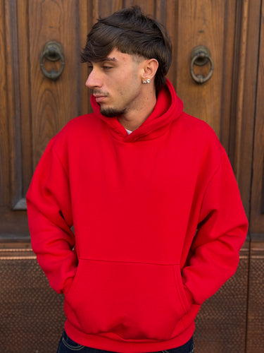 Felpa con capuccio rossa boxy fit made in italy
