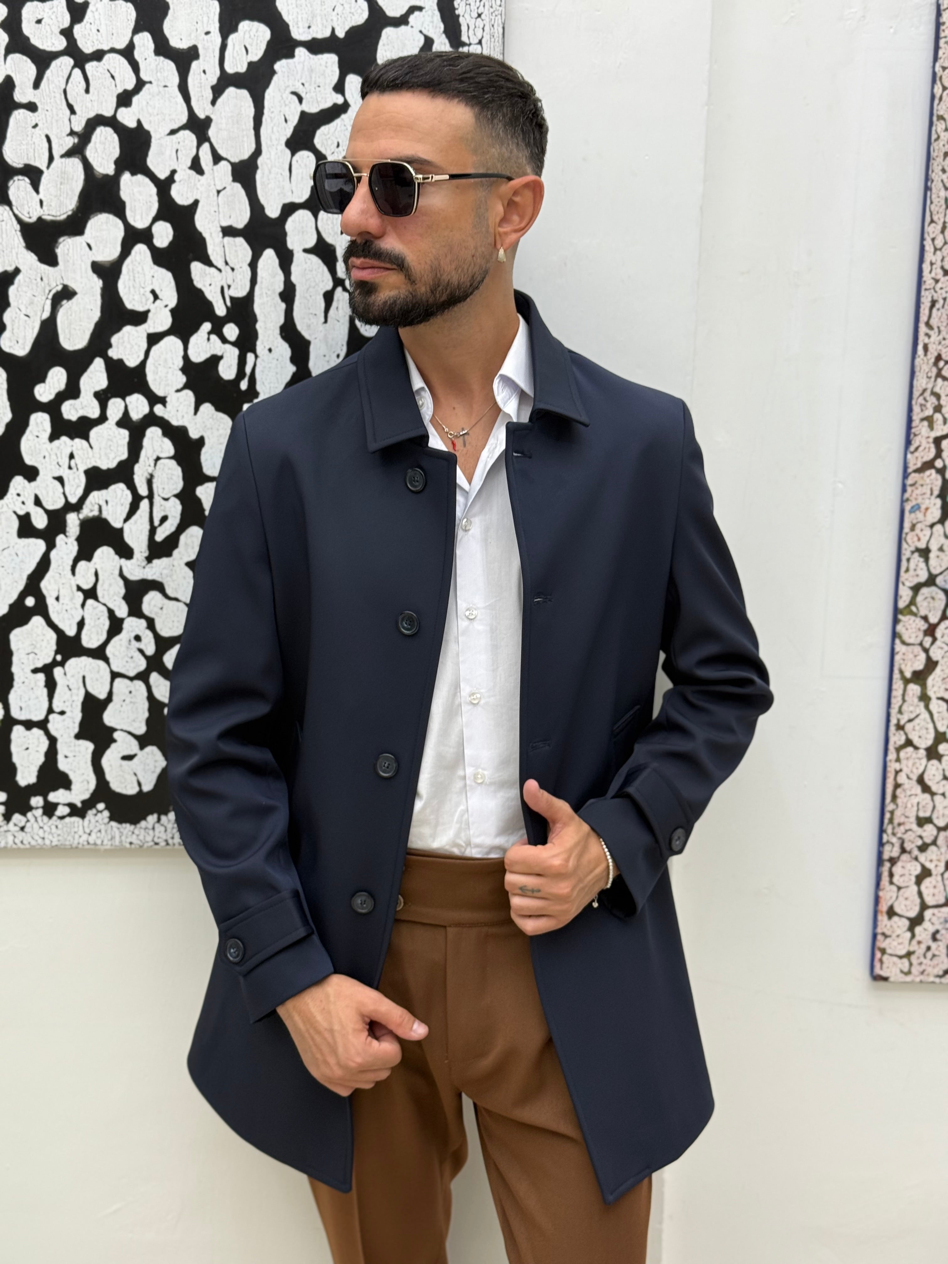 fit nella foto indossa una taglia 50 portando una 48 di pantalone.. consigliabile una tg in più in base alla tv del pantalone