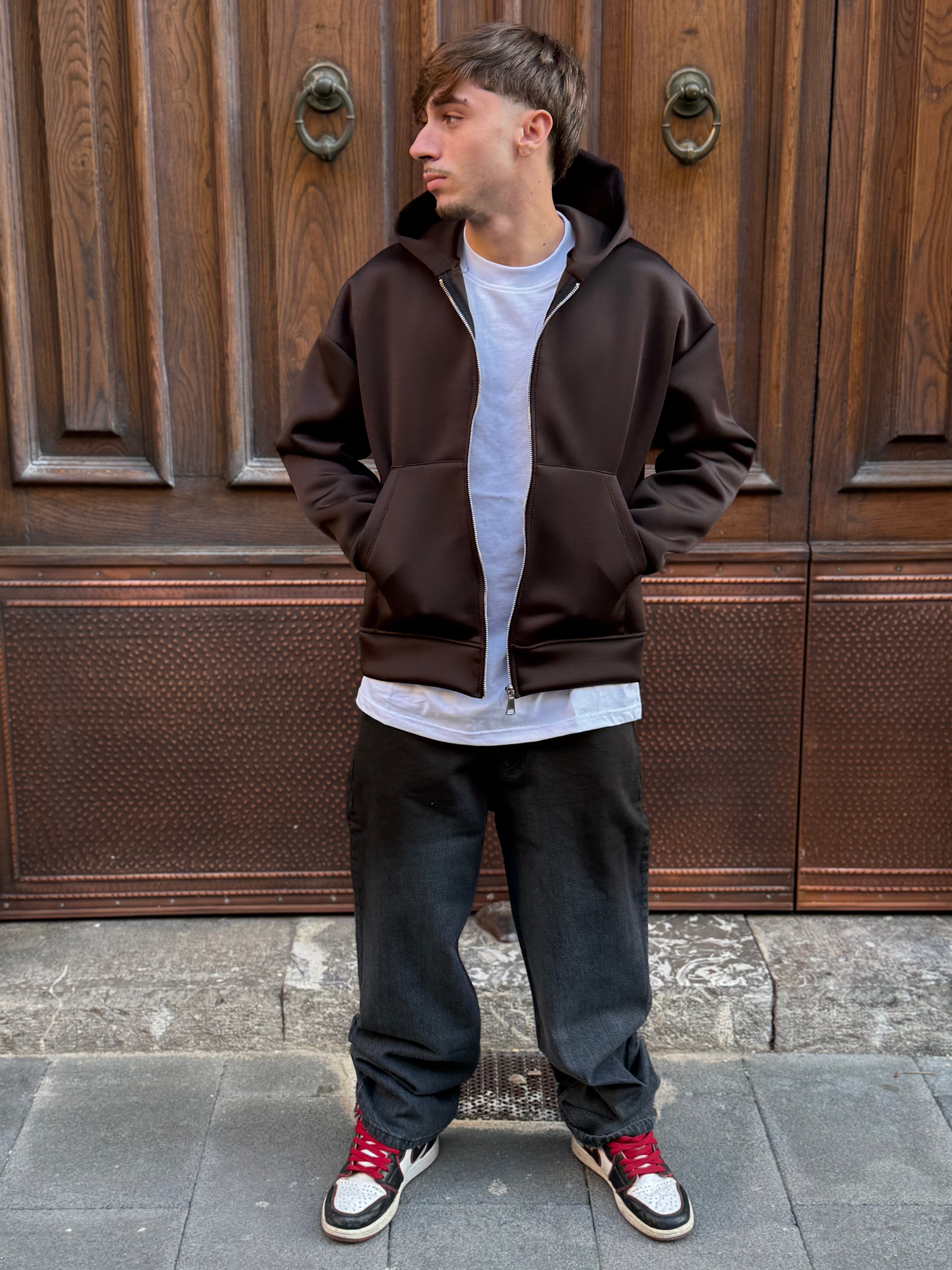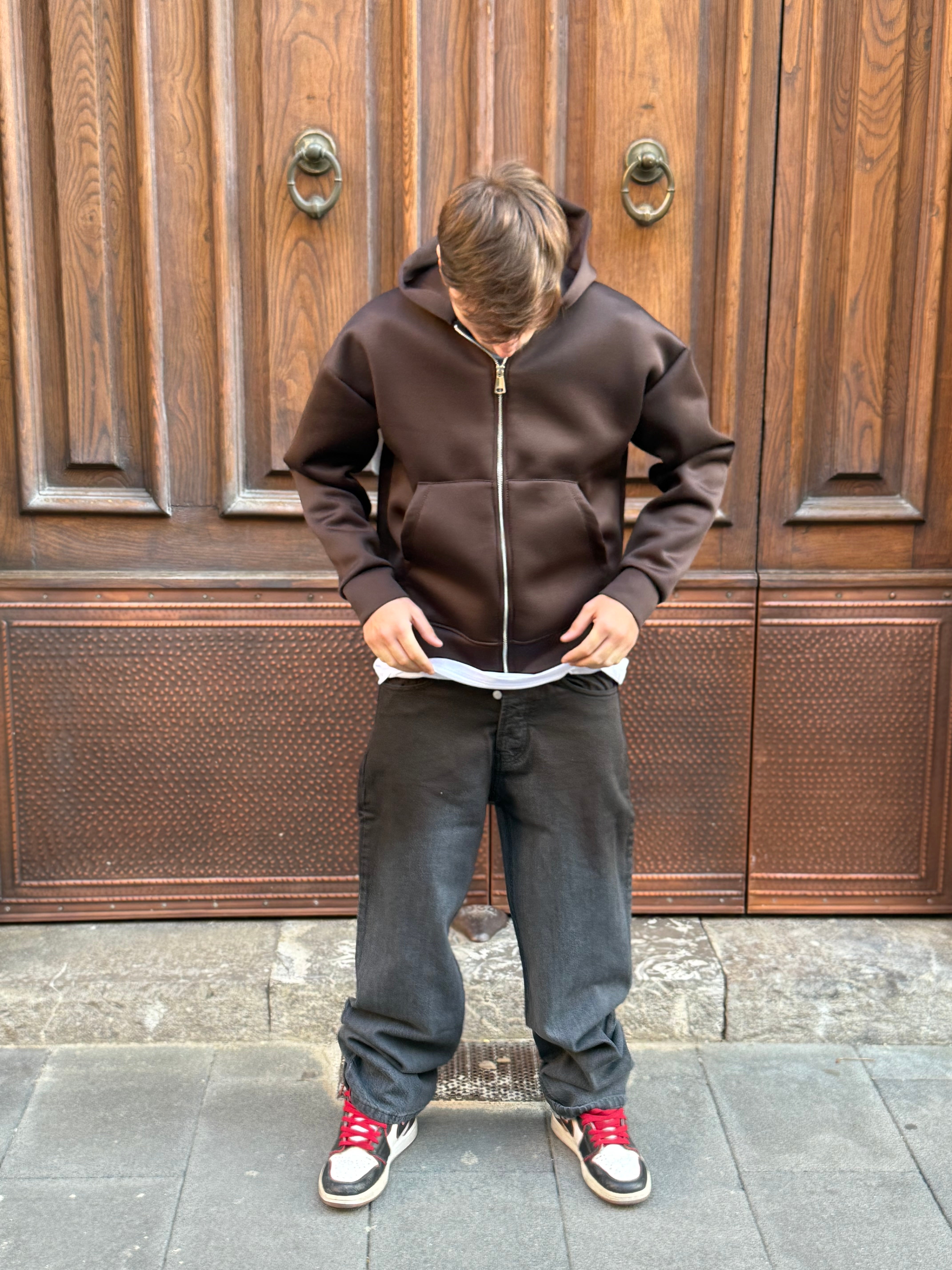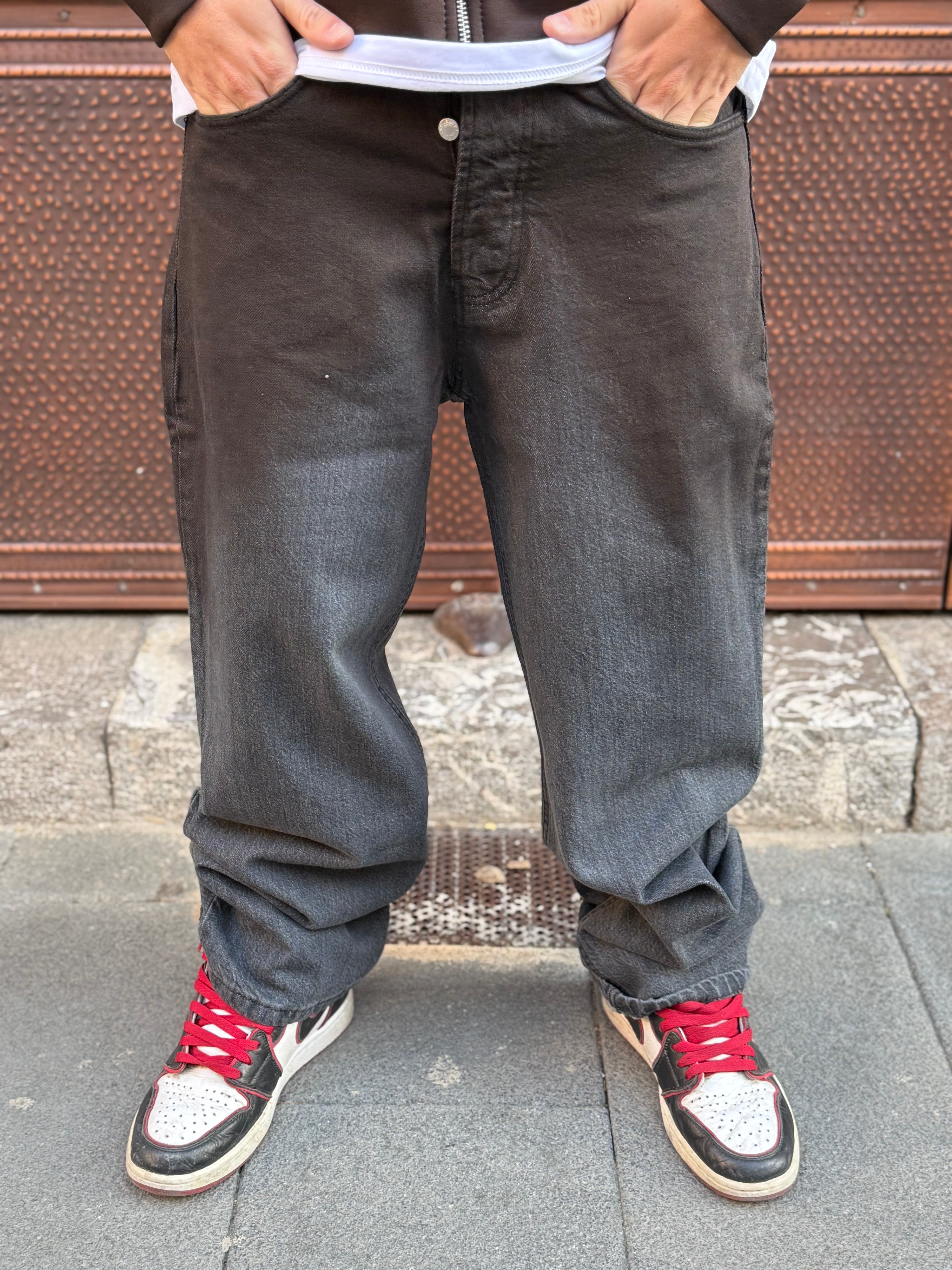 Jeans Baggy Grigio spalmato marrone