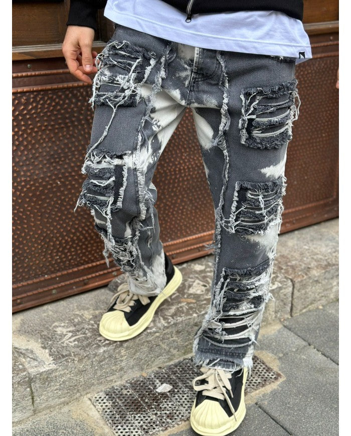 Jeans grigio sfumato con sfrange bianche stracciato d835 b