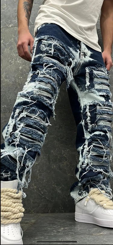 jeans RIPPED blu sfumato con rotture sfumato bianco D818