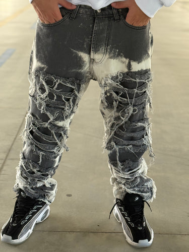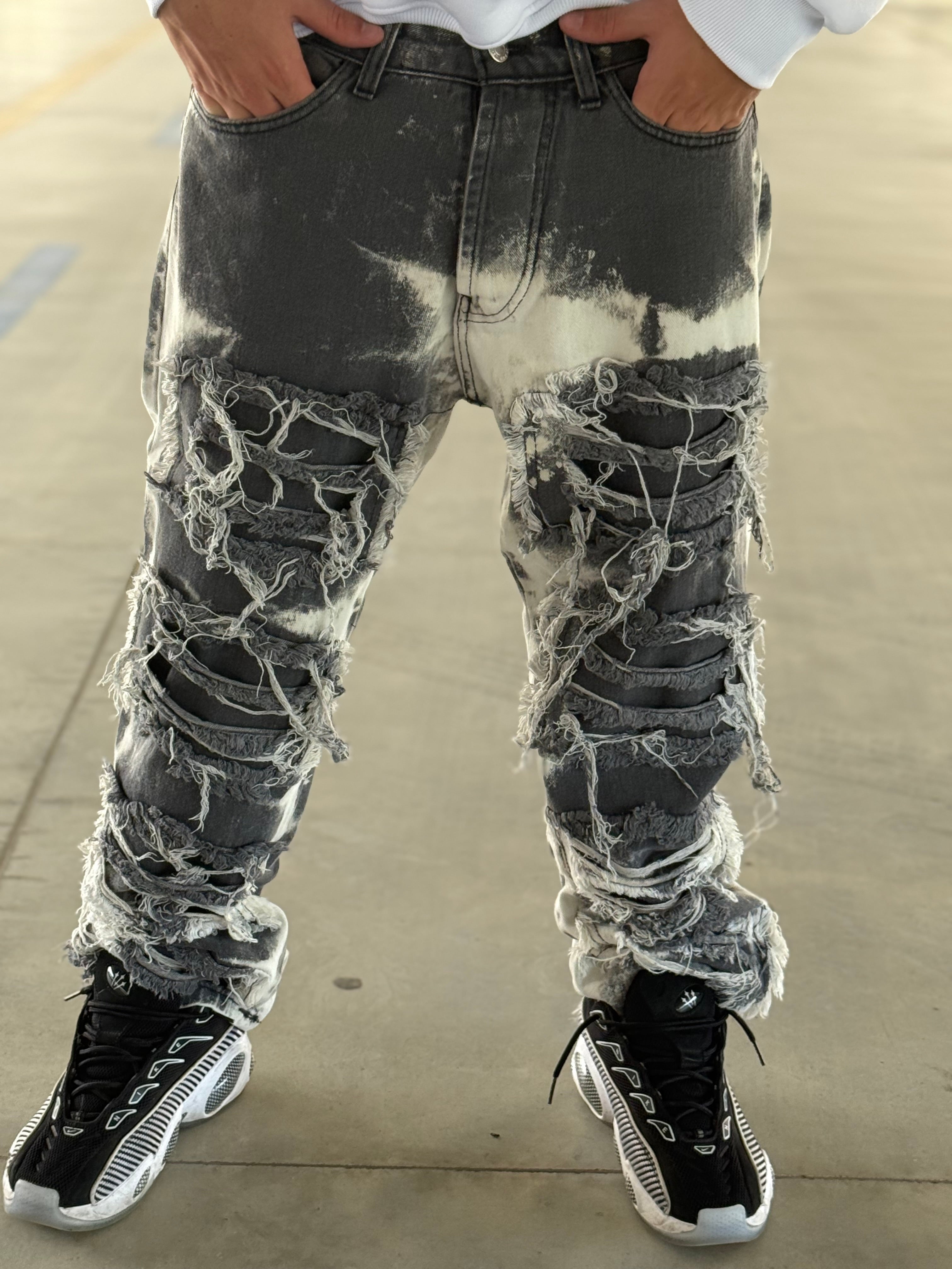 jeans RIPPED grigio sfumato con rotture sfumato bianco B835