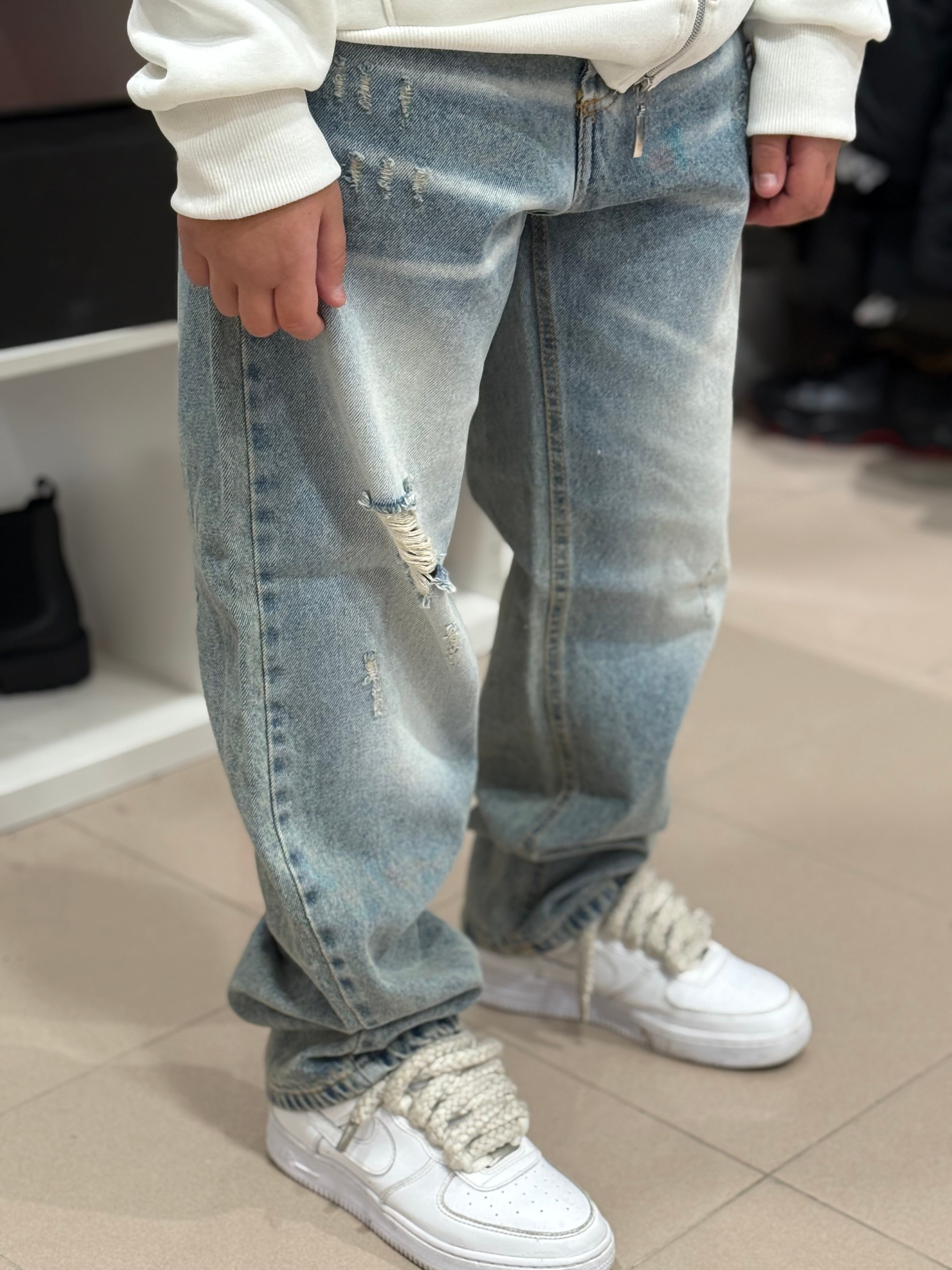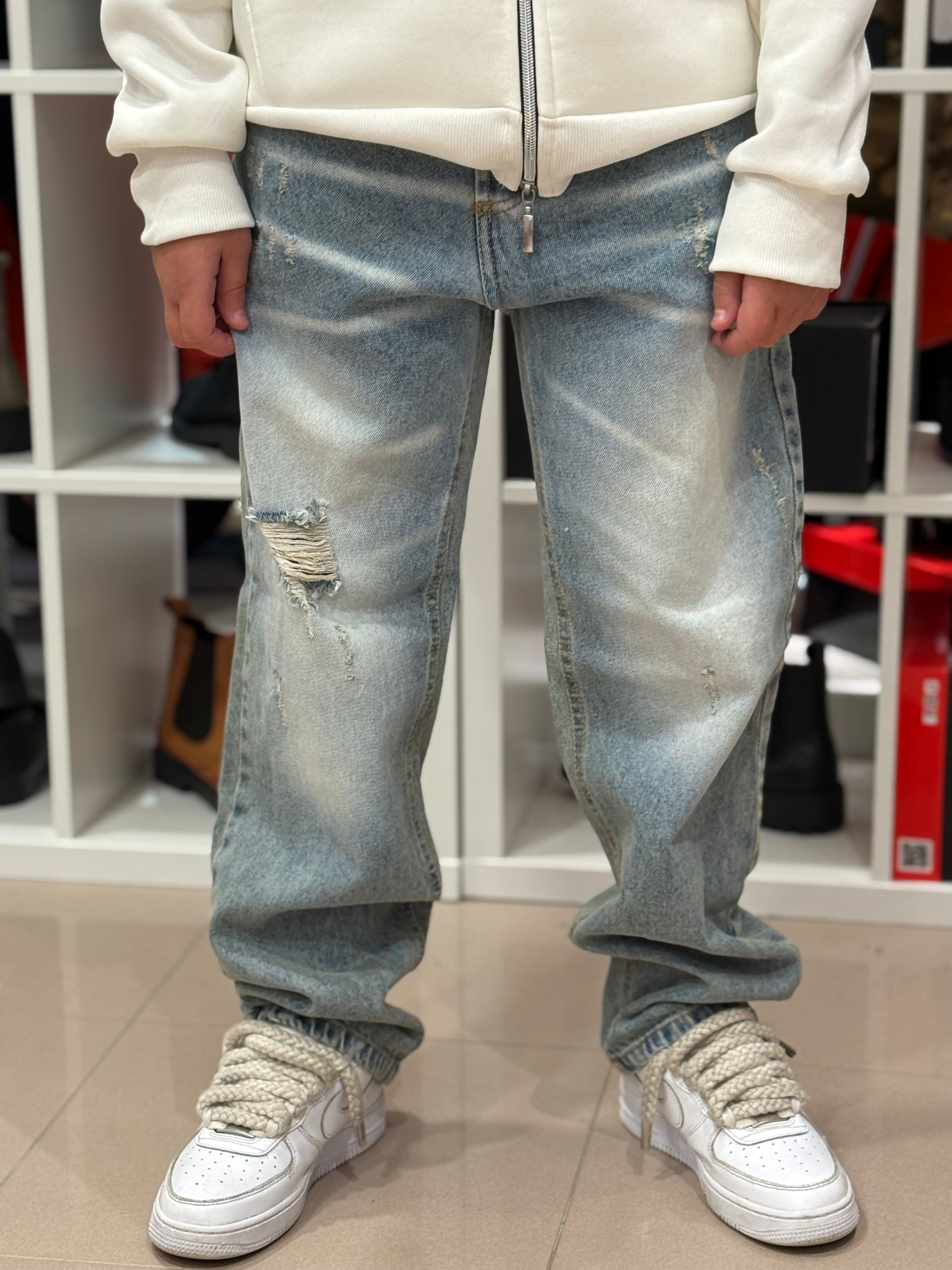 Vestibilita regolare Questi jeans per il tuo bambino sono il perfetto mix di stile e comodità. Con il loro design moderno e casual, il tuo bambino sarà sempre alla moda. Realizzati con materiali di qualità, questi jeans sono resistenti e dureranno a lungo. Vestiti il tuo piccolo fashionista con i nostri jeans strappati e sorprendi tutti!