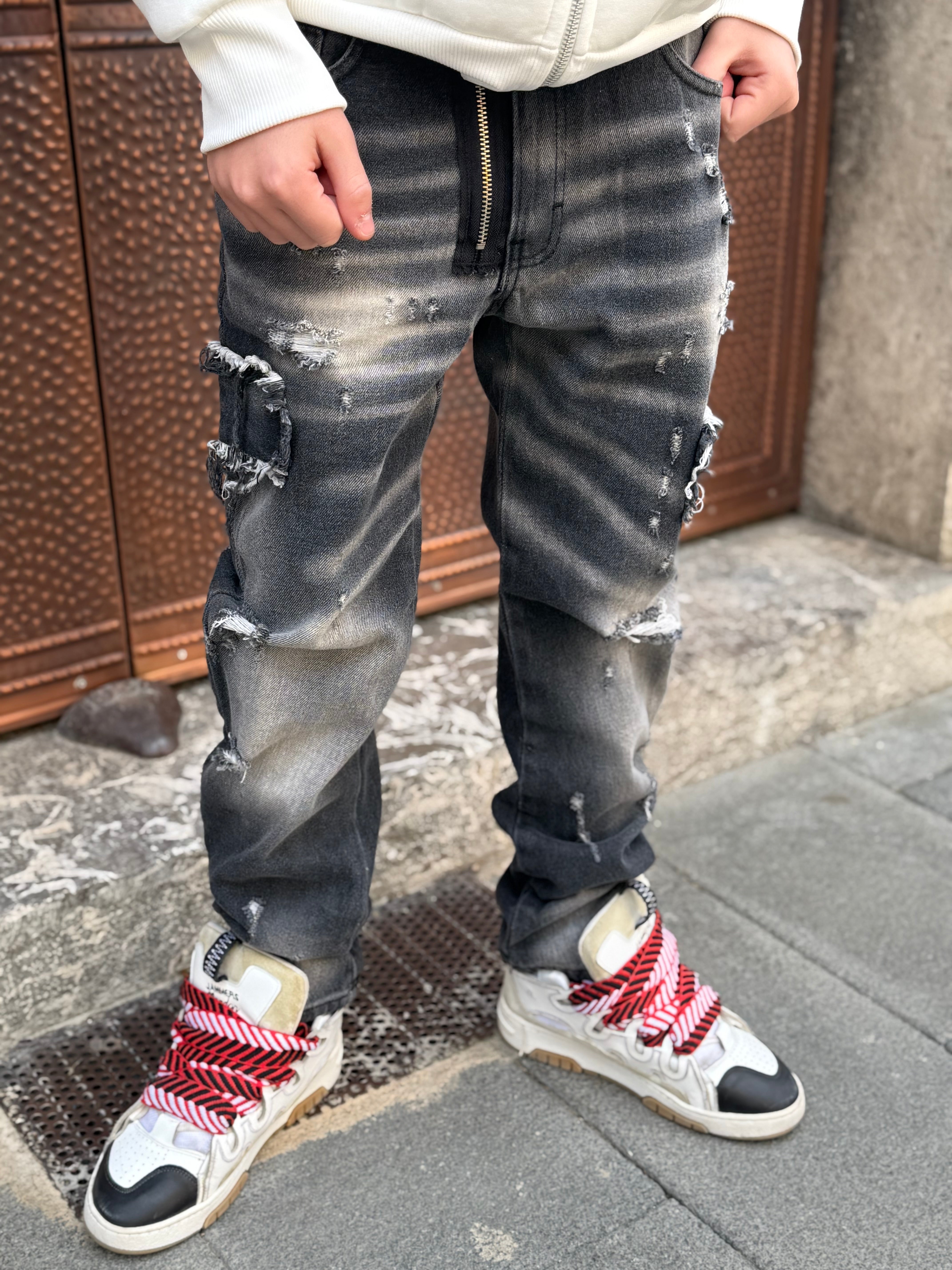 Vestibilita regolare Questi jeans per il tuo bambino sono il perfetto mix di stile e comodità. Con il loro design moderno e casual, il tuo bambino sarà sempre alla moda. Realizzati con materiali di qualità, questi jeans sono resistenti e dureranno a lungo. Vestiti il tuo piccolo fashionista con i nostri jeans strappati e sorprendi tutti!