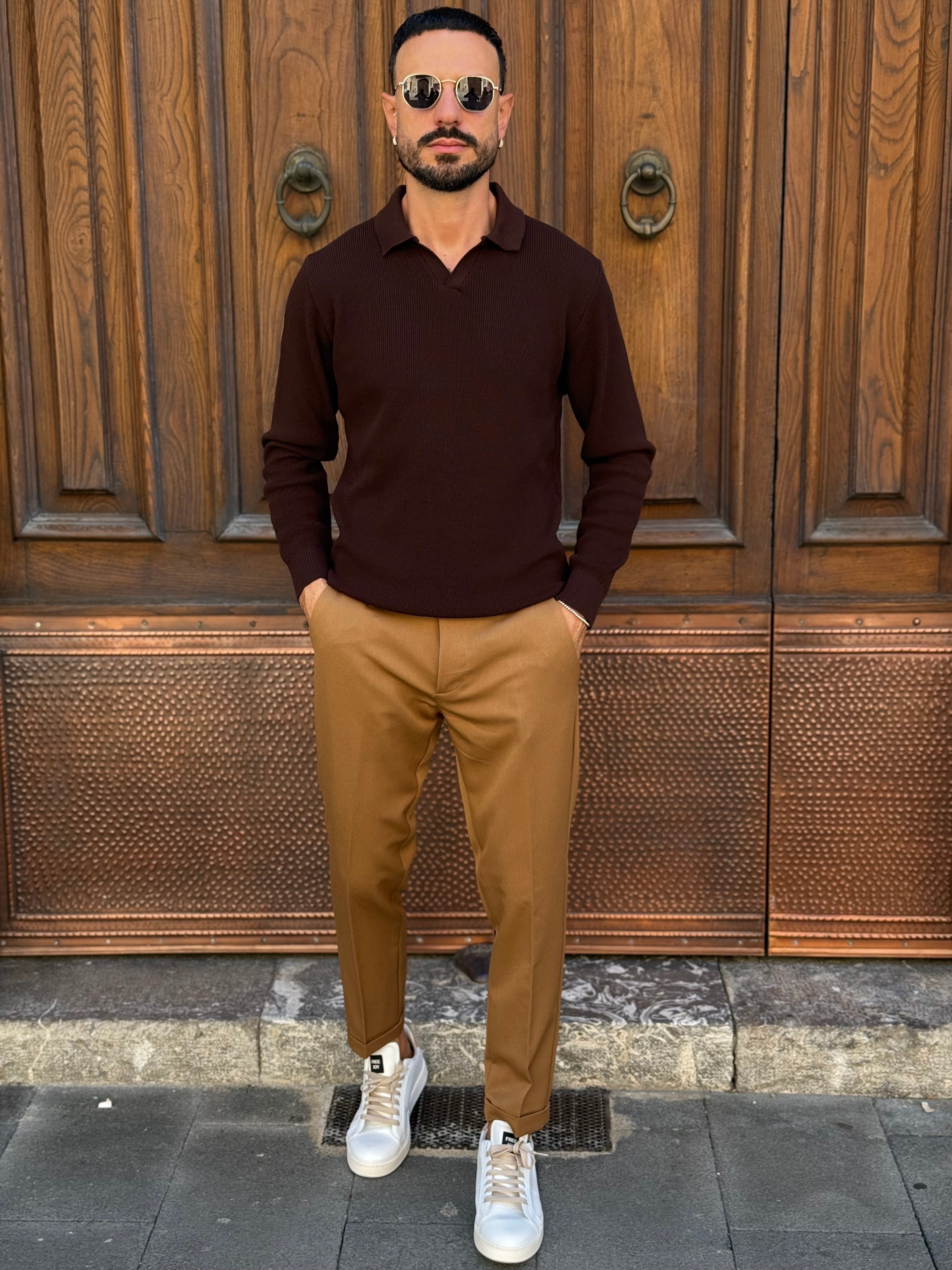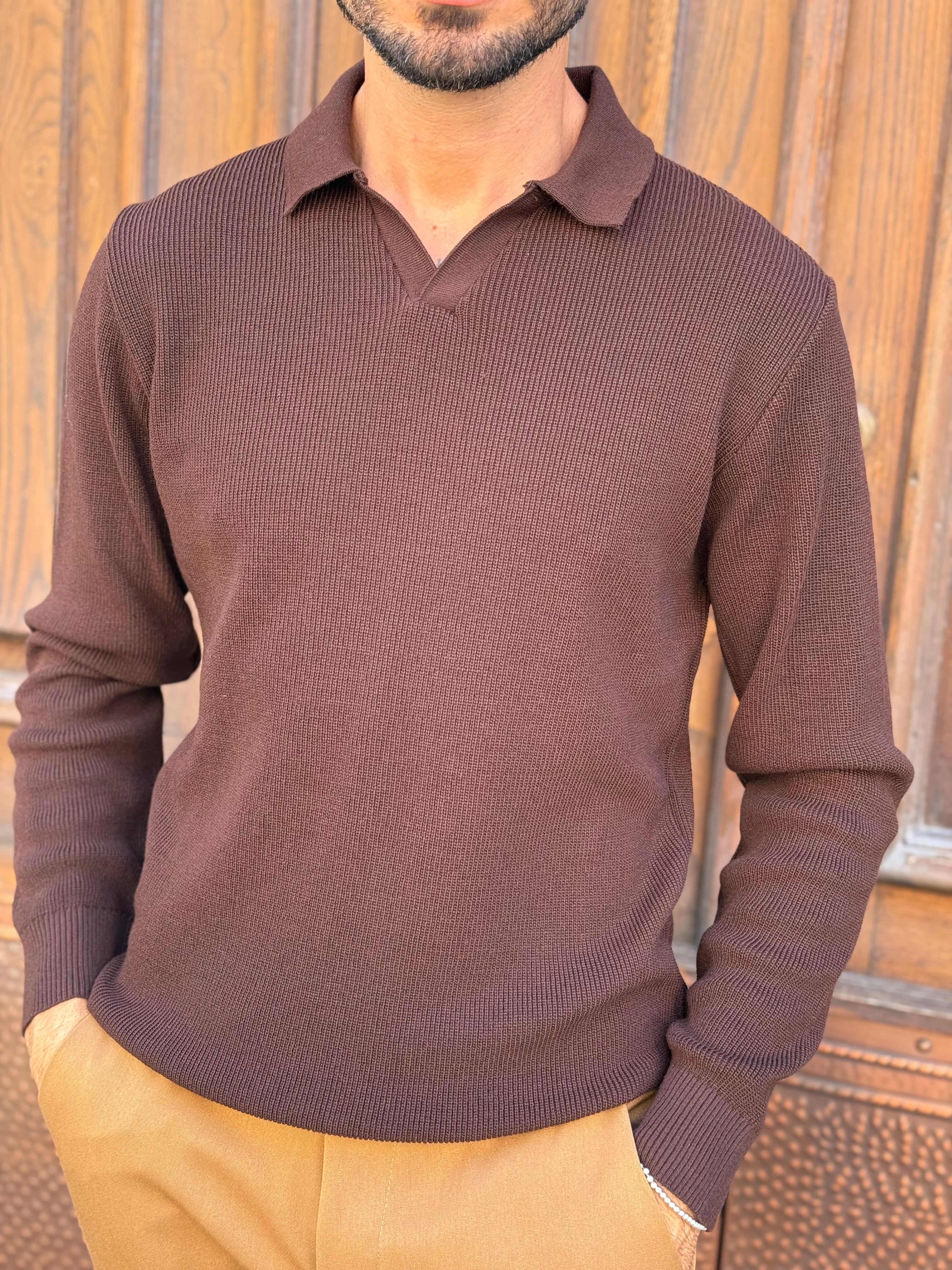 Polo marrone manica lunga a costine art fj
