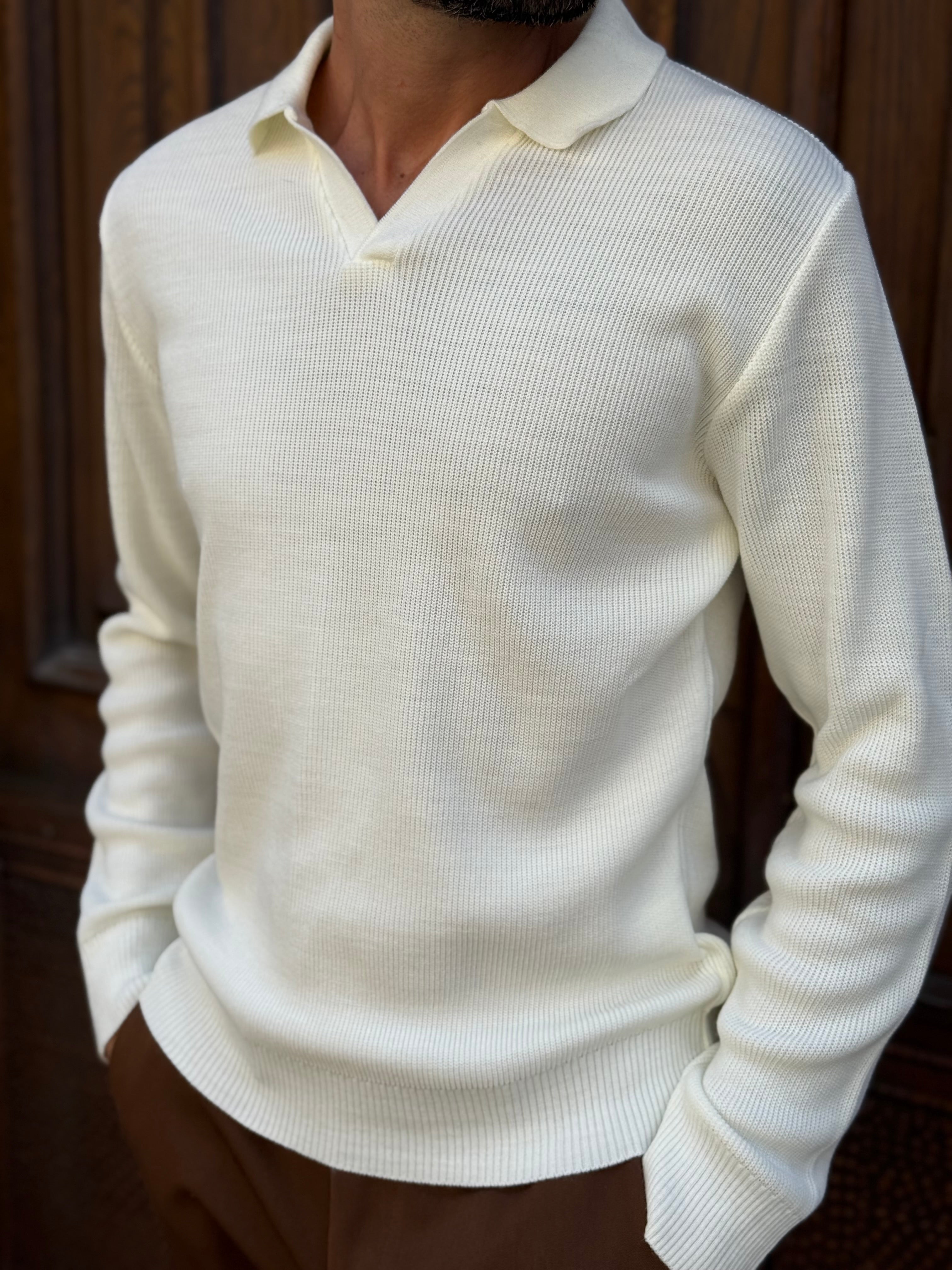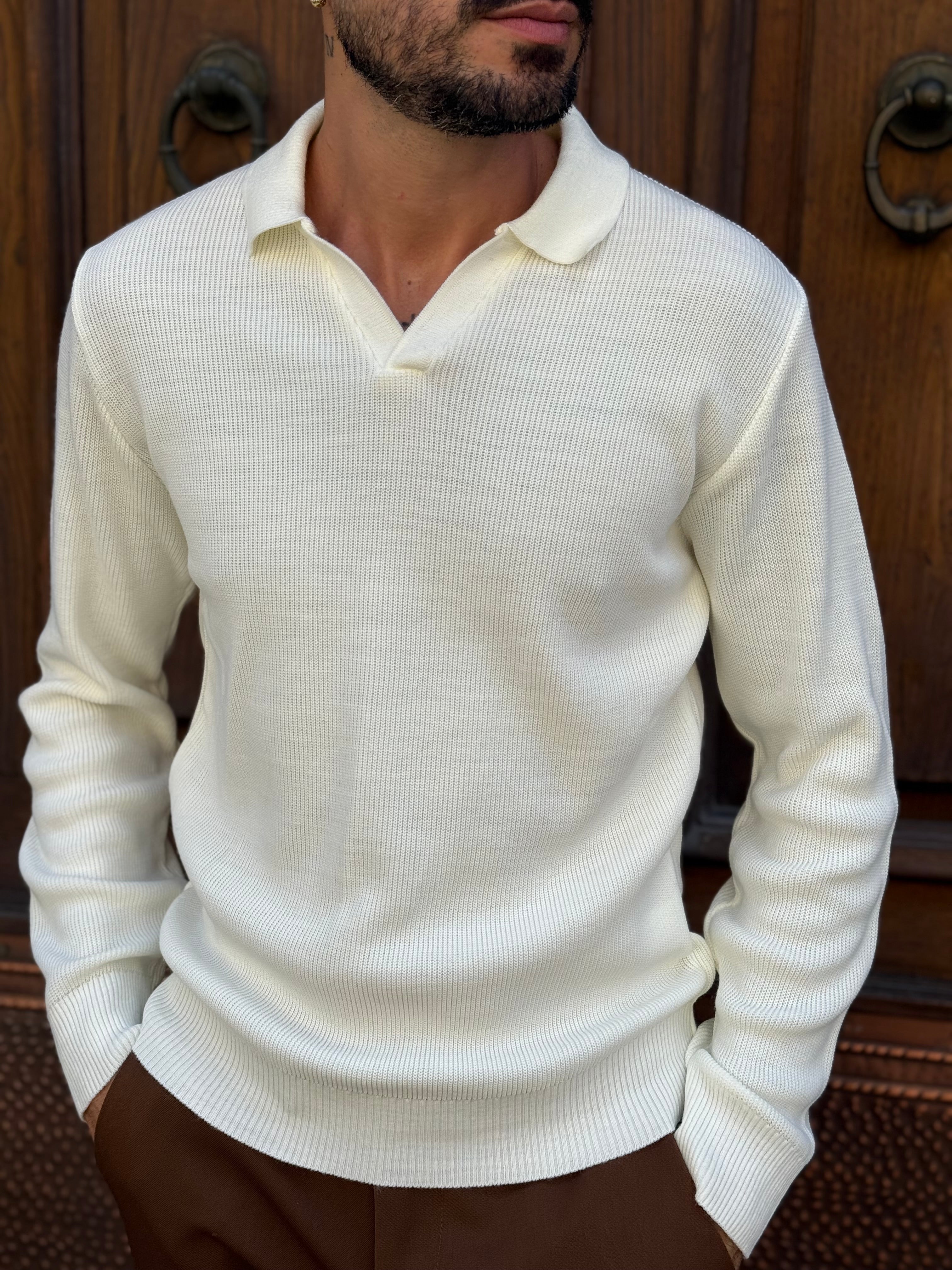 Polo bianca manica lunga a costine art fj