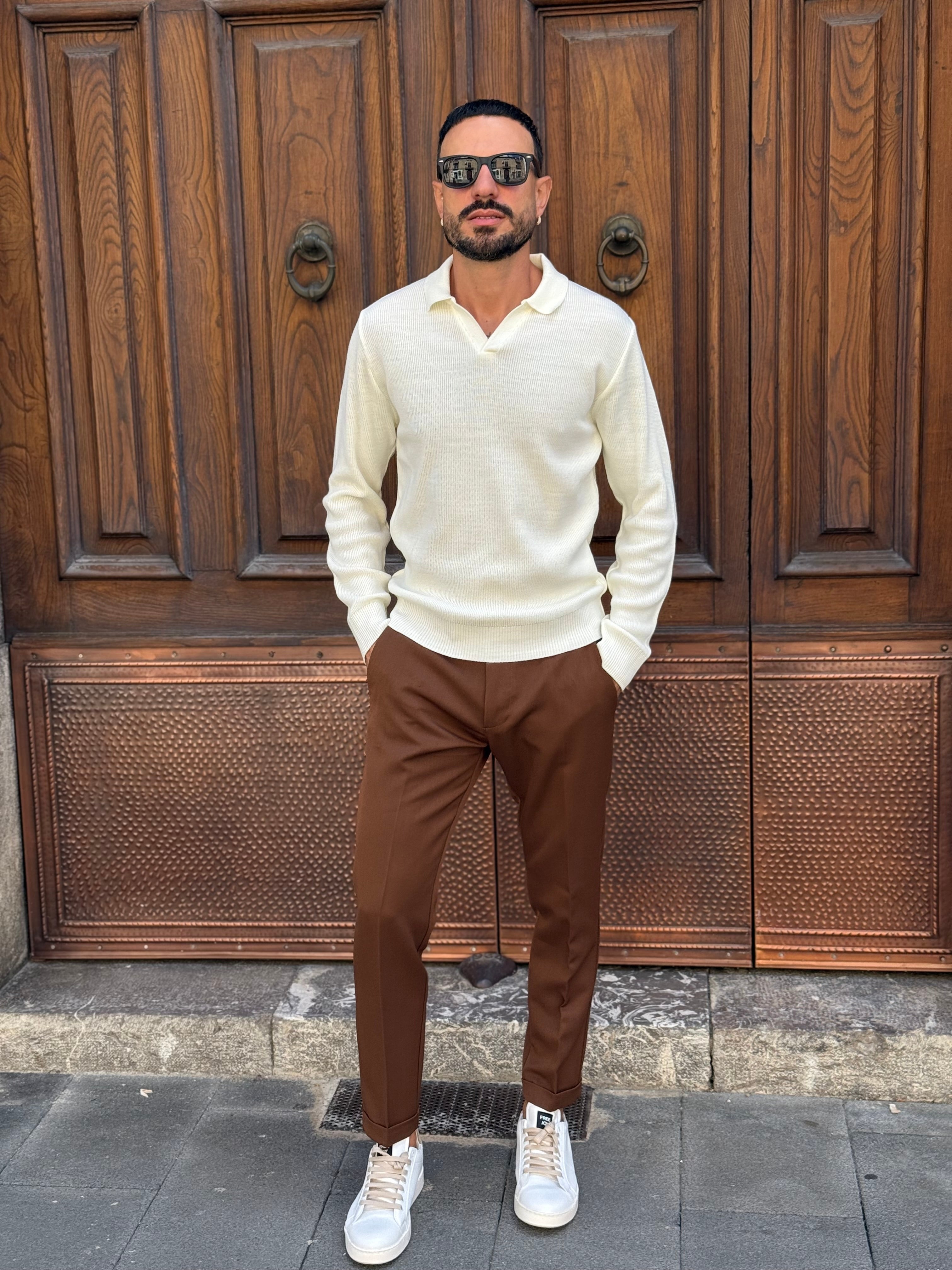 Vestibilita Slim Fit consigliabile una tg in più della solita NELLA FOTO INDOSSA UNA TG xl PORTANDO UNA 48 DI PANTALONE