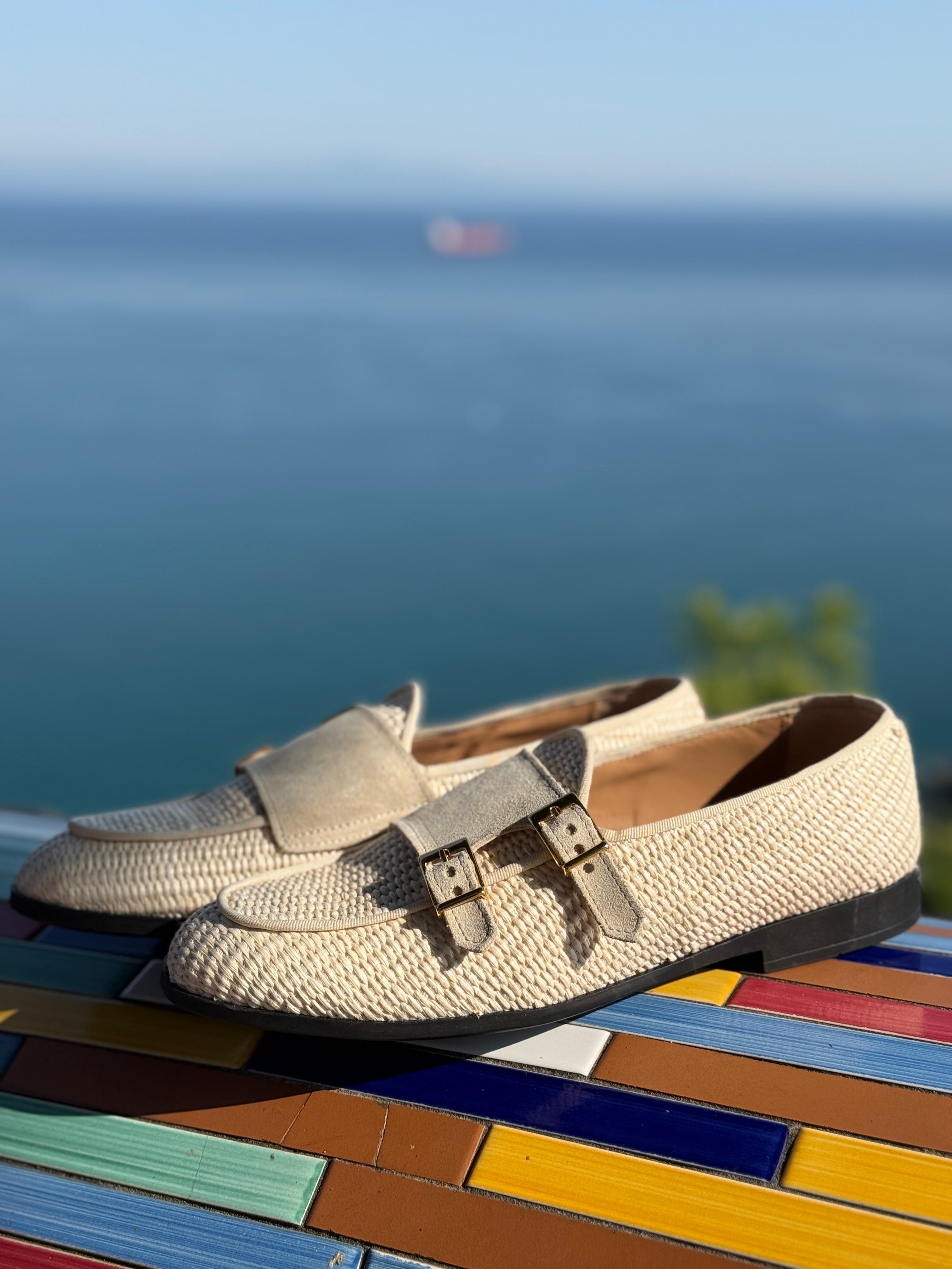 Questo mocassino artigianale in rafia è perfetto per le tue giornate estive. Con i suoi bellissimi colori e il design unico, risalterà il tuo outfit e ti farà sentire al top della moda. Provalo con la cintura in rafia assortita per un look ancora più pazzesco. CALZATA REGOLARE