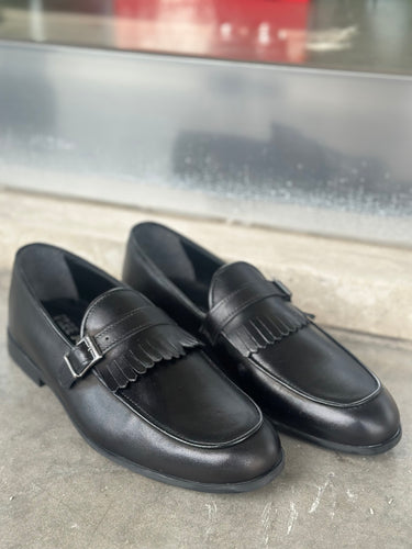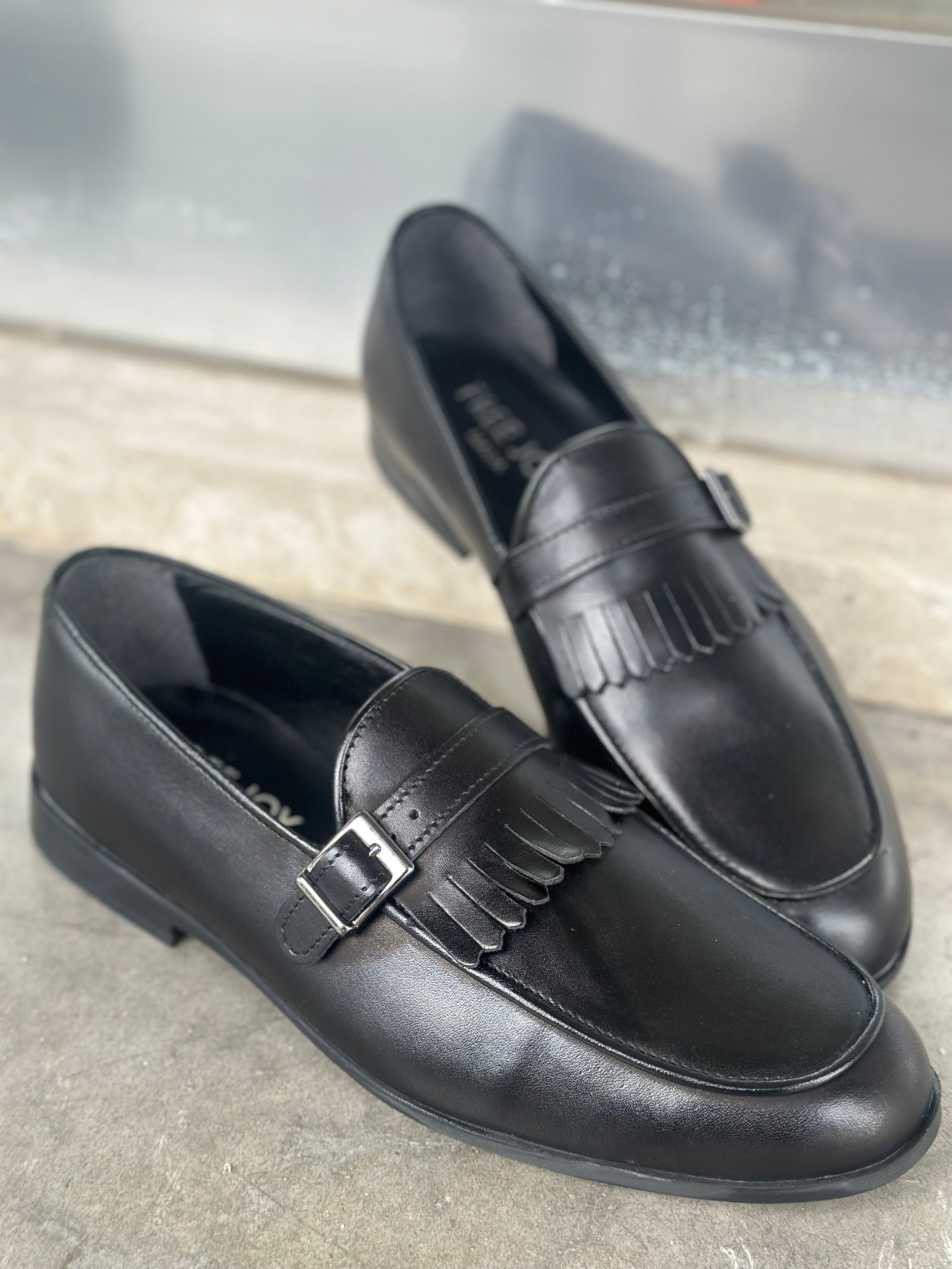 mocassino pelle nero con fibbia e France fj q1