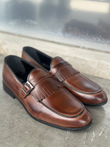 mocassino pelle marrone testa di moro con fibbia e France fj q1