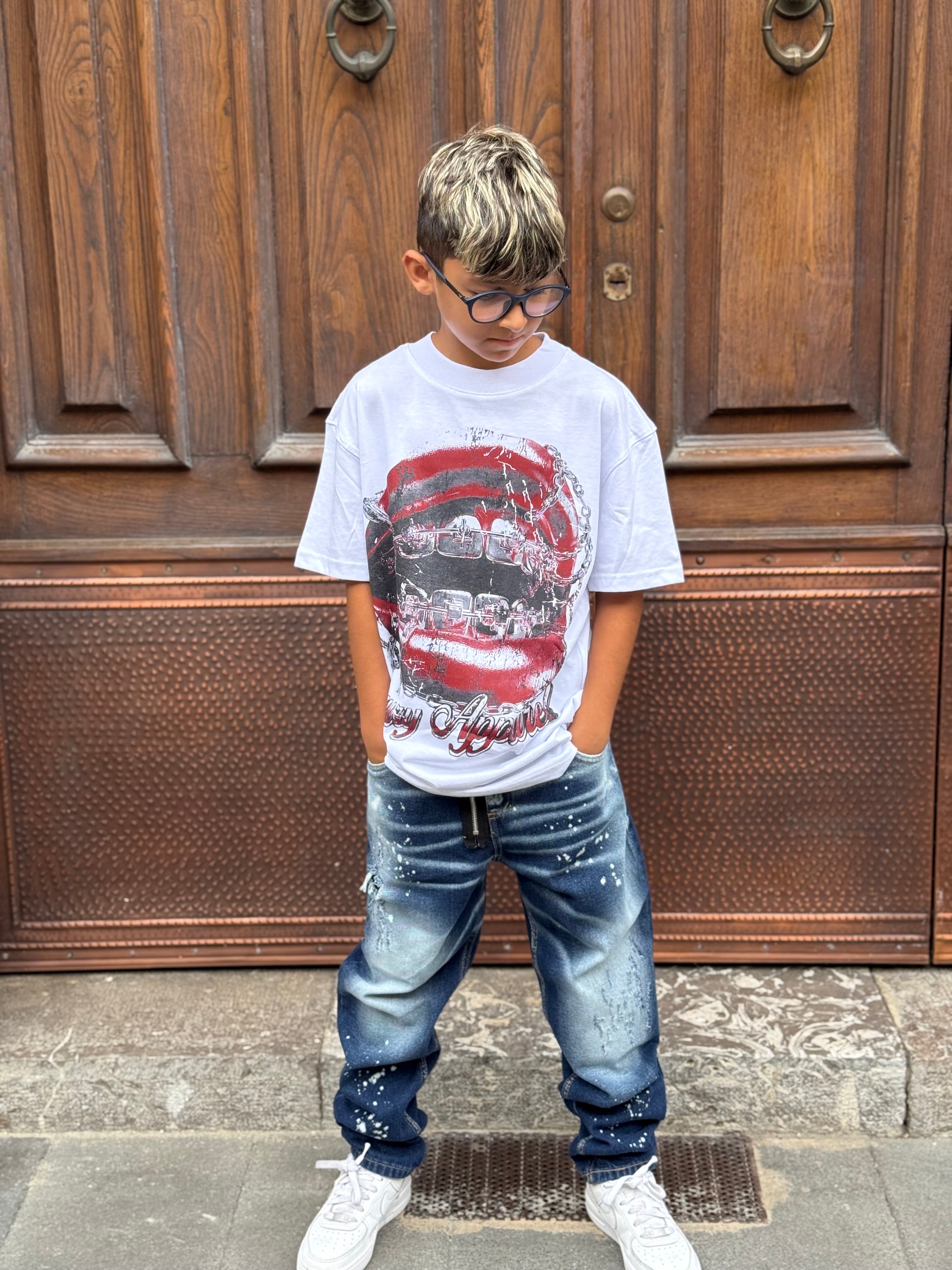 T-Shirt Bambino bianca logo bocca