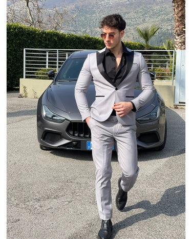 abito monopetto grigio mezzo rever nero Q1