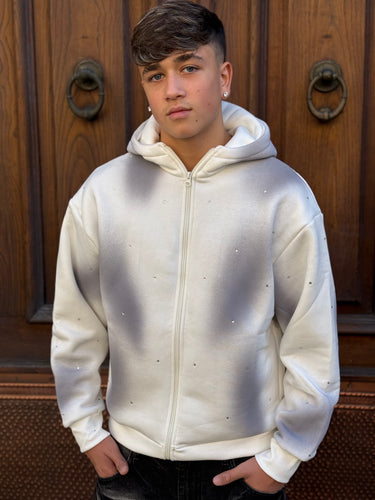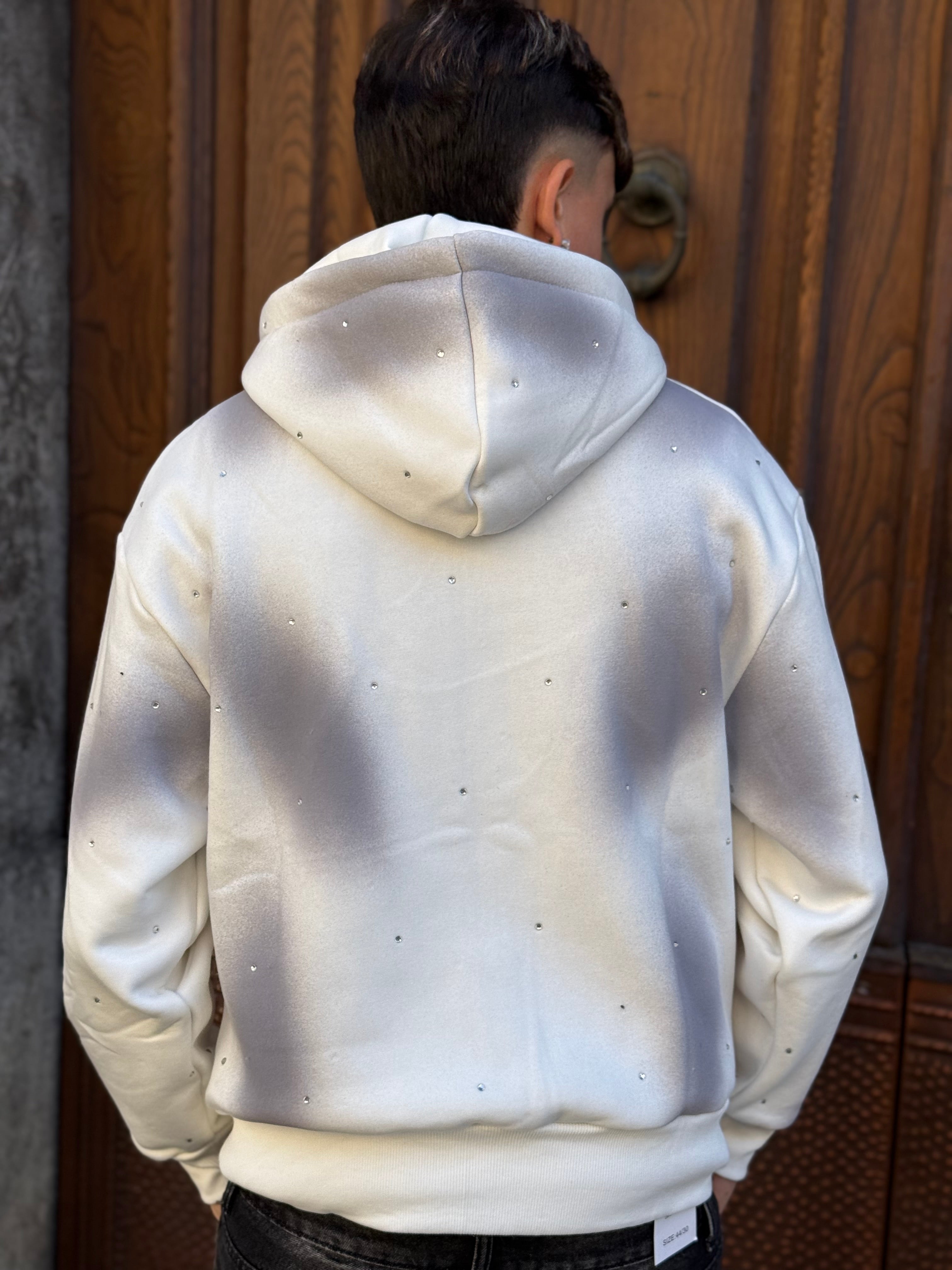 Felpa bianca Spalmata zip DIAMOND Brillantinata con capuccio boxy fit made in italy