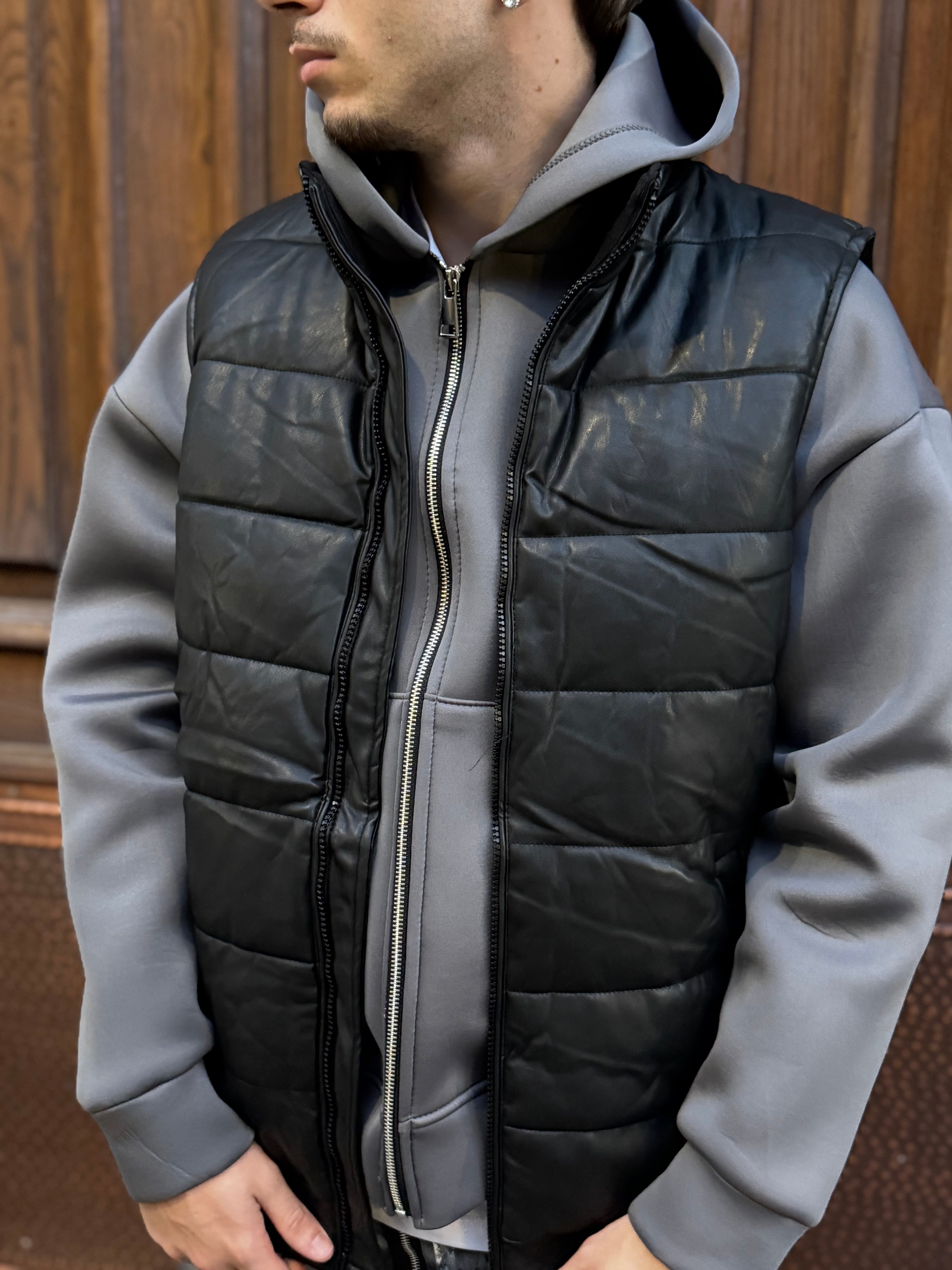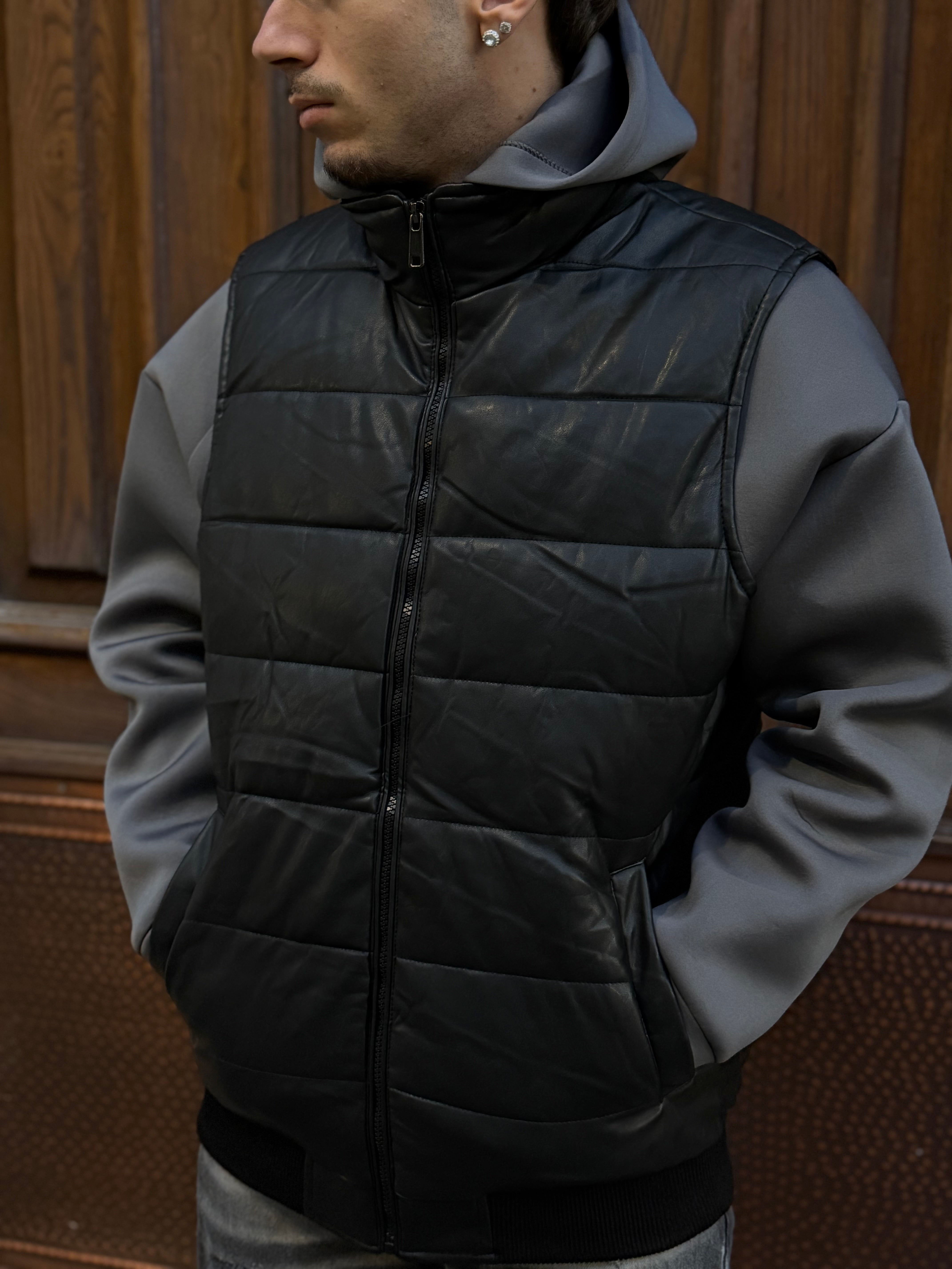 Smanicato bomber ecopelle nero puf