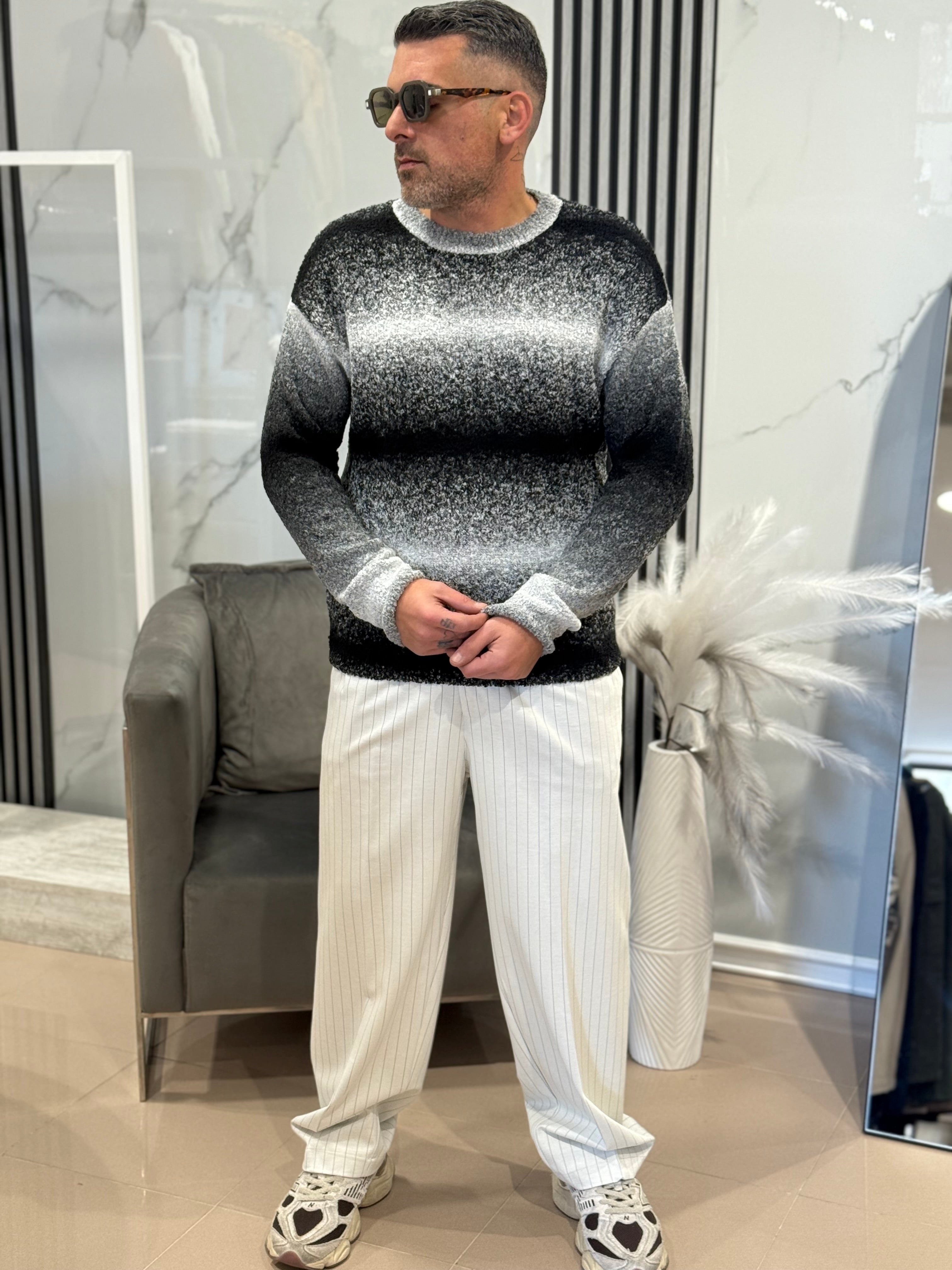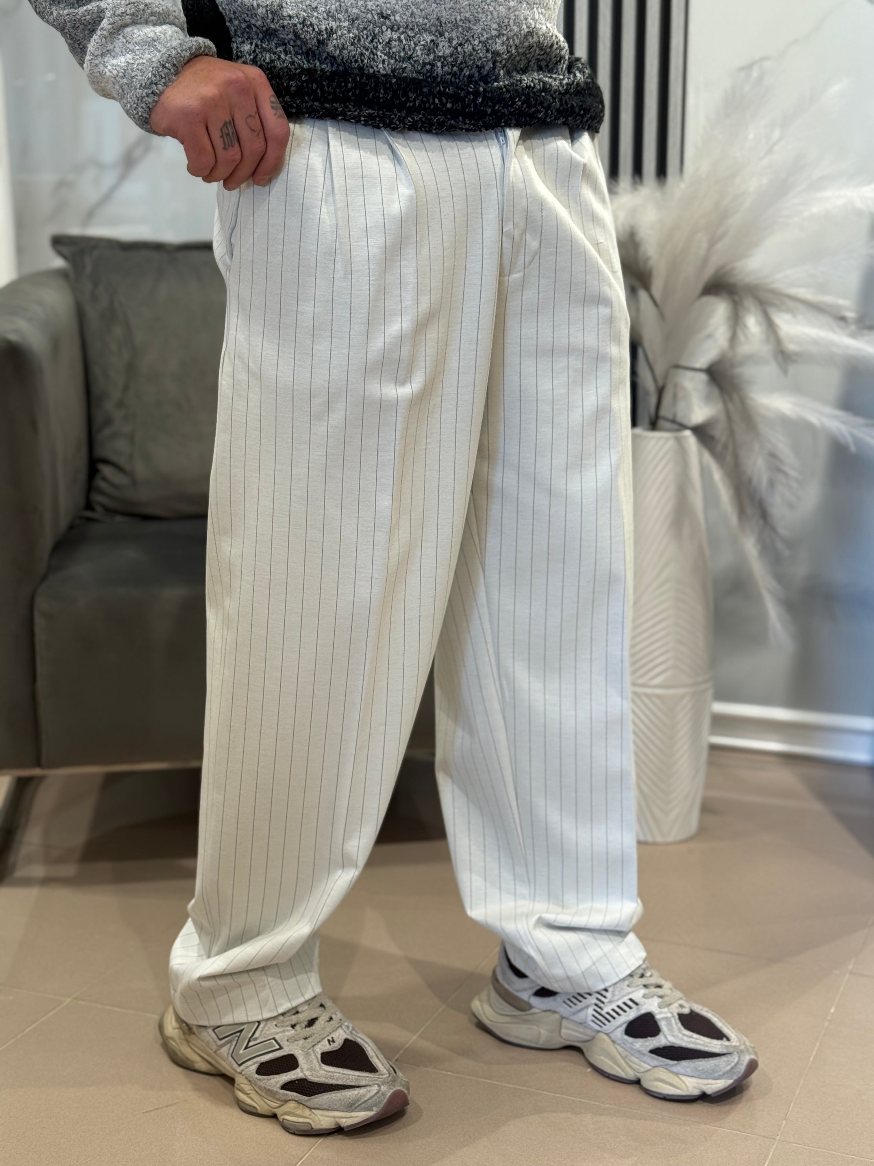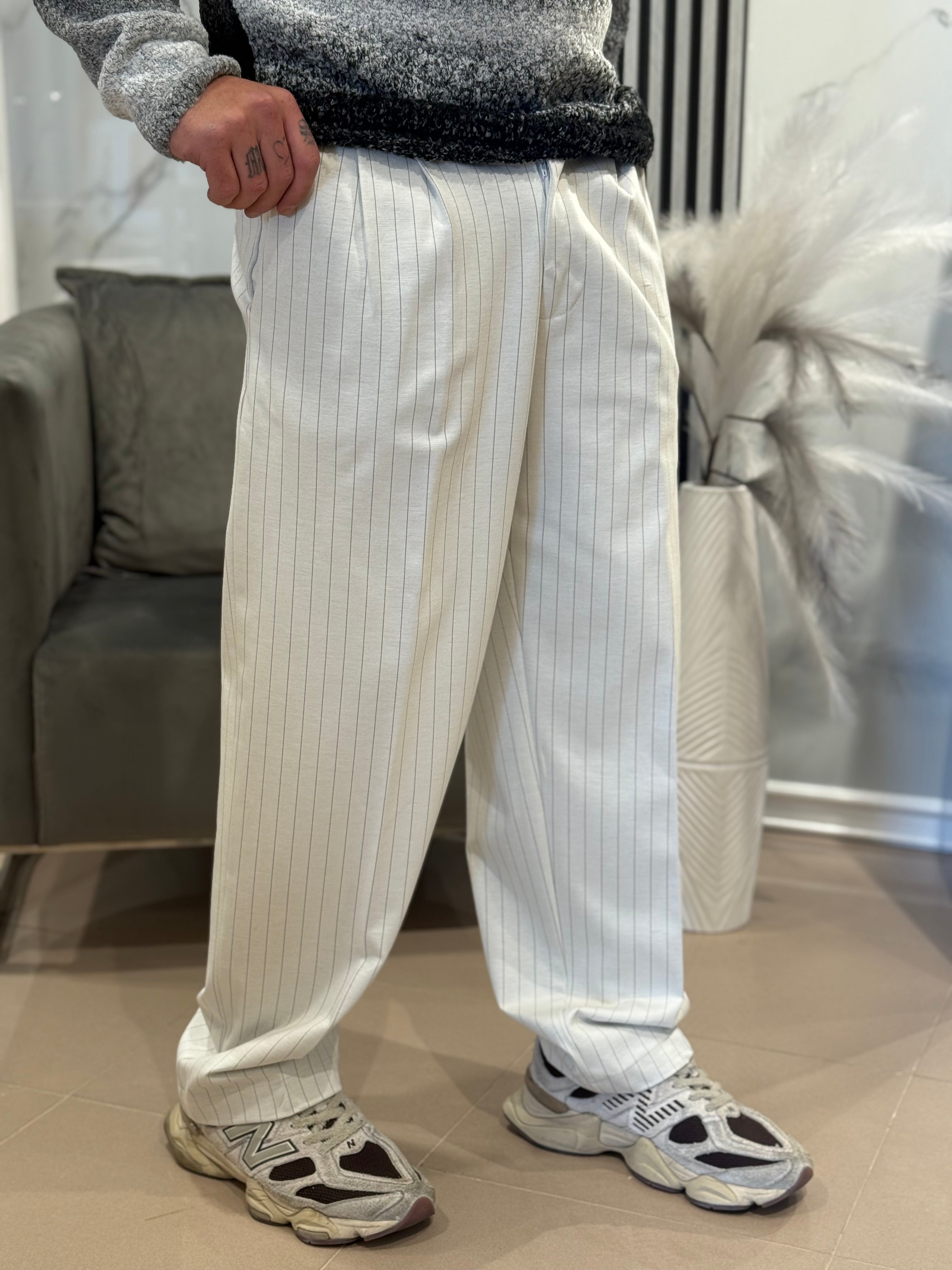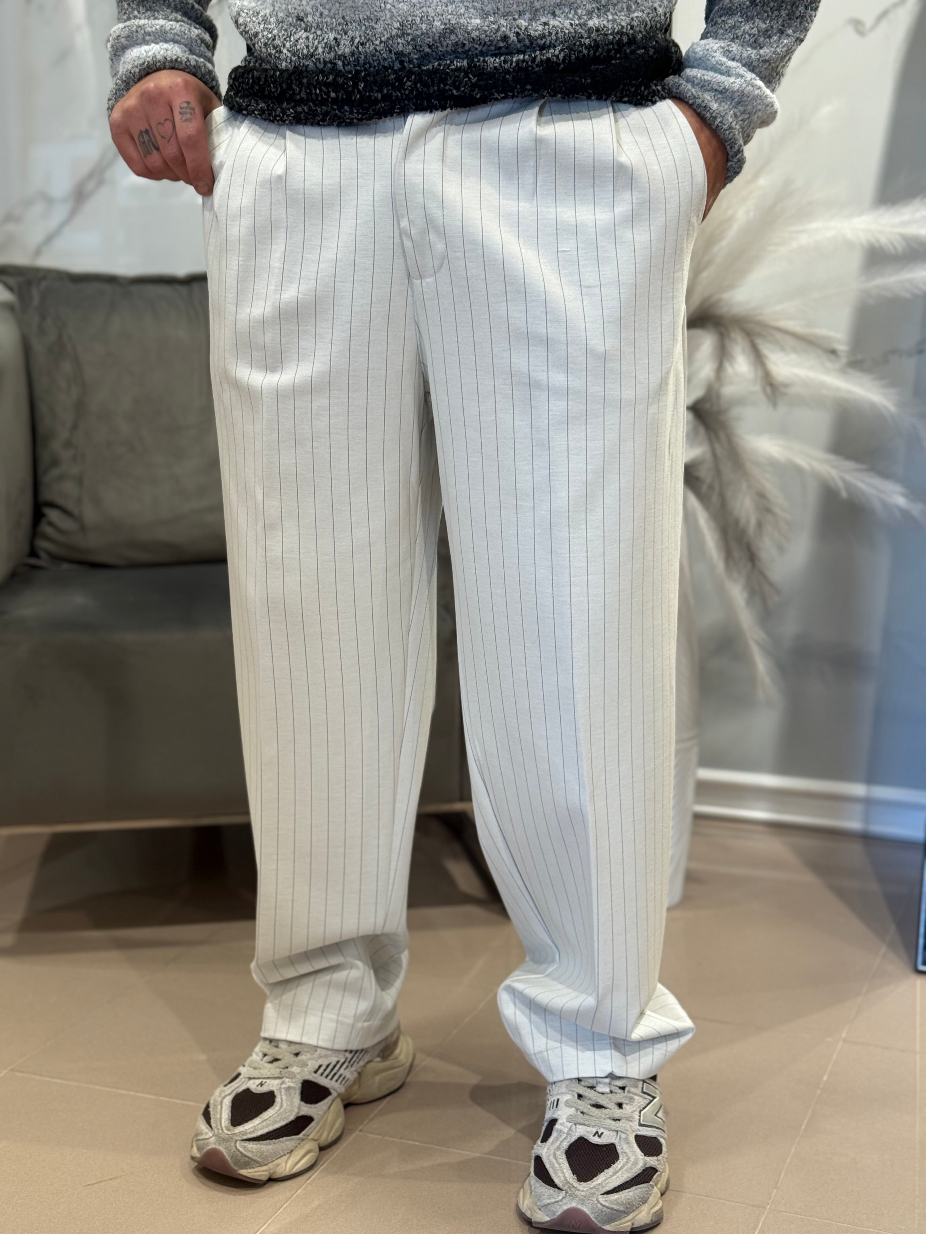 Pantalone fondo largo bianco panna gessato