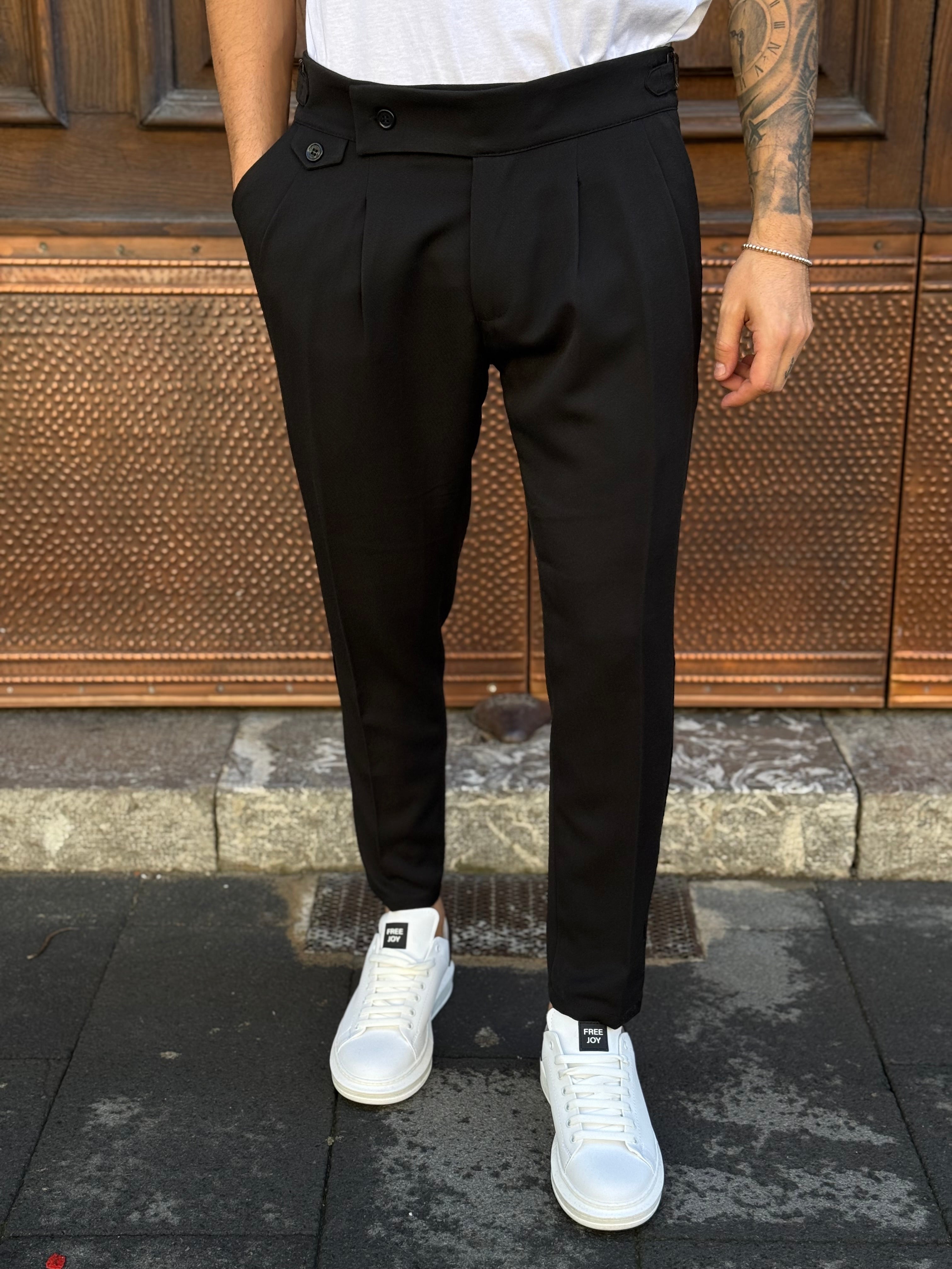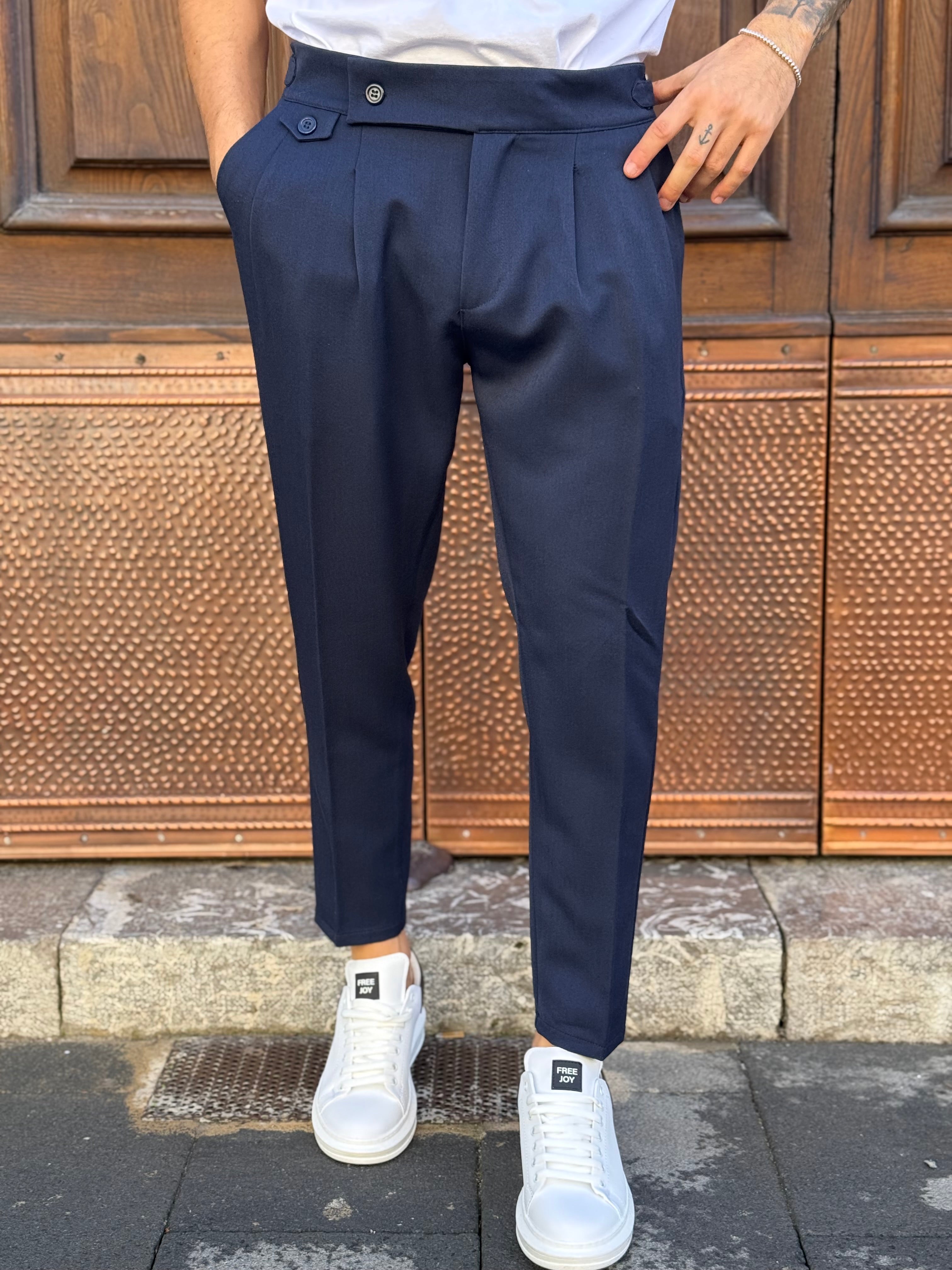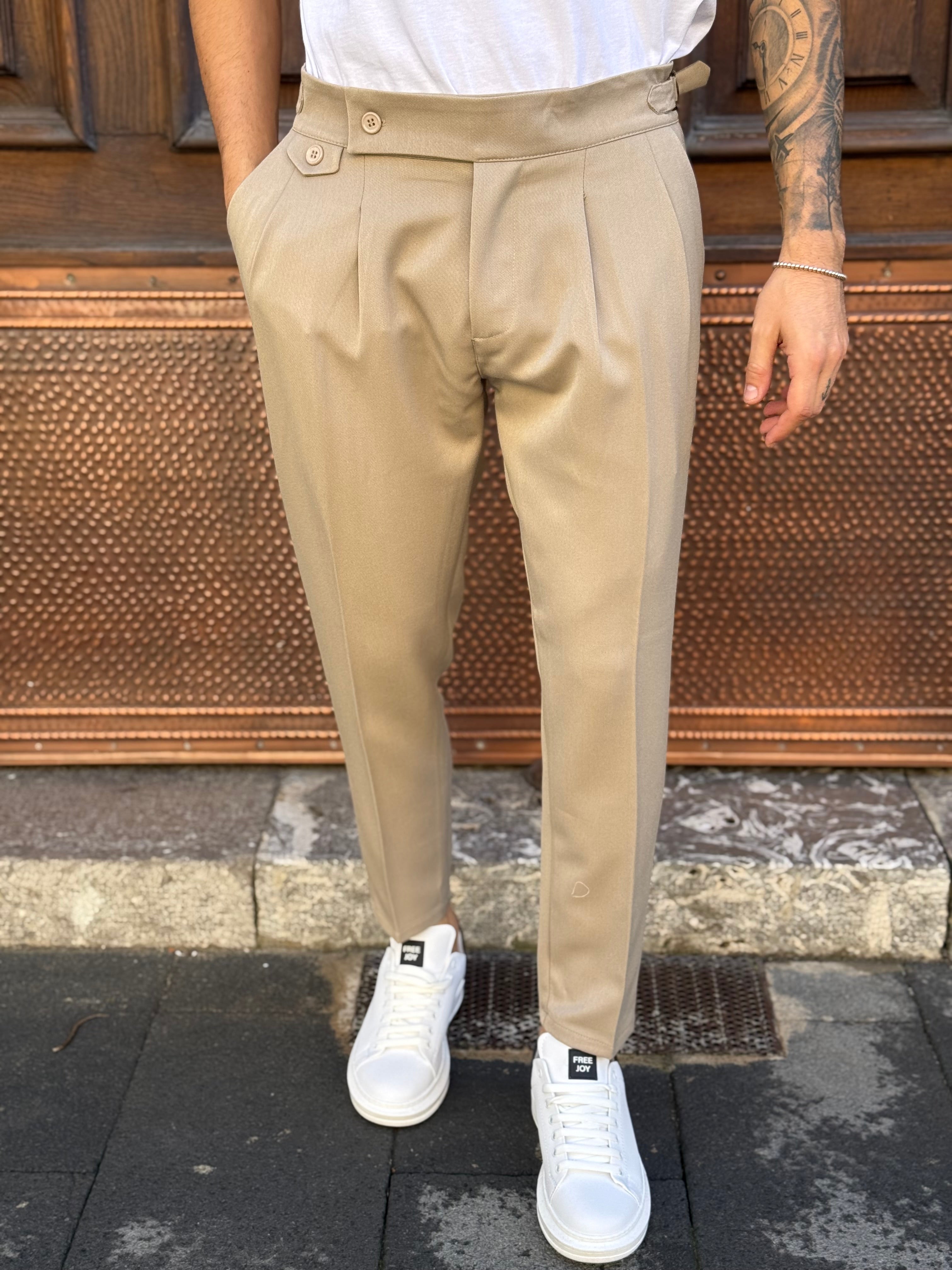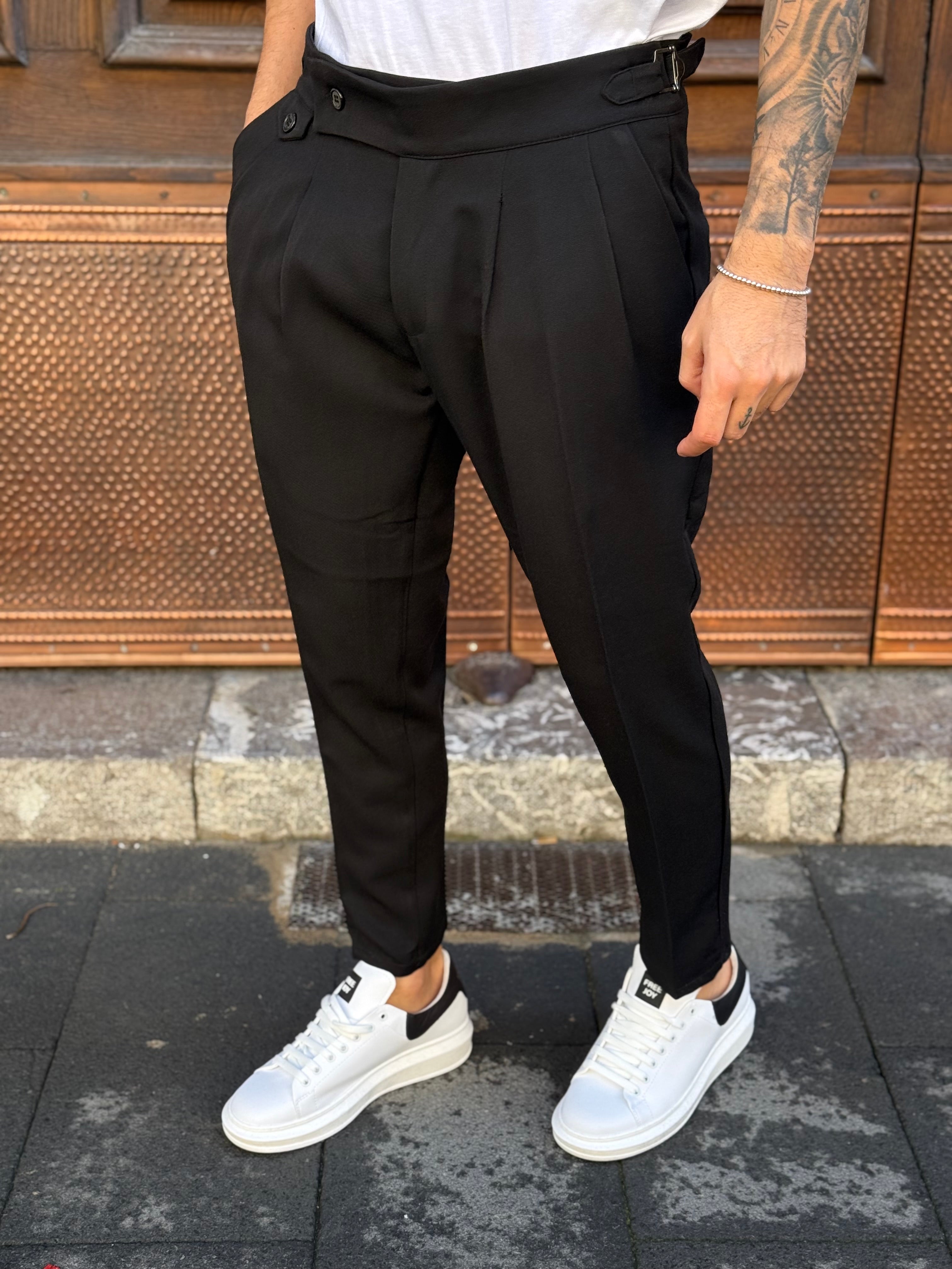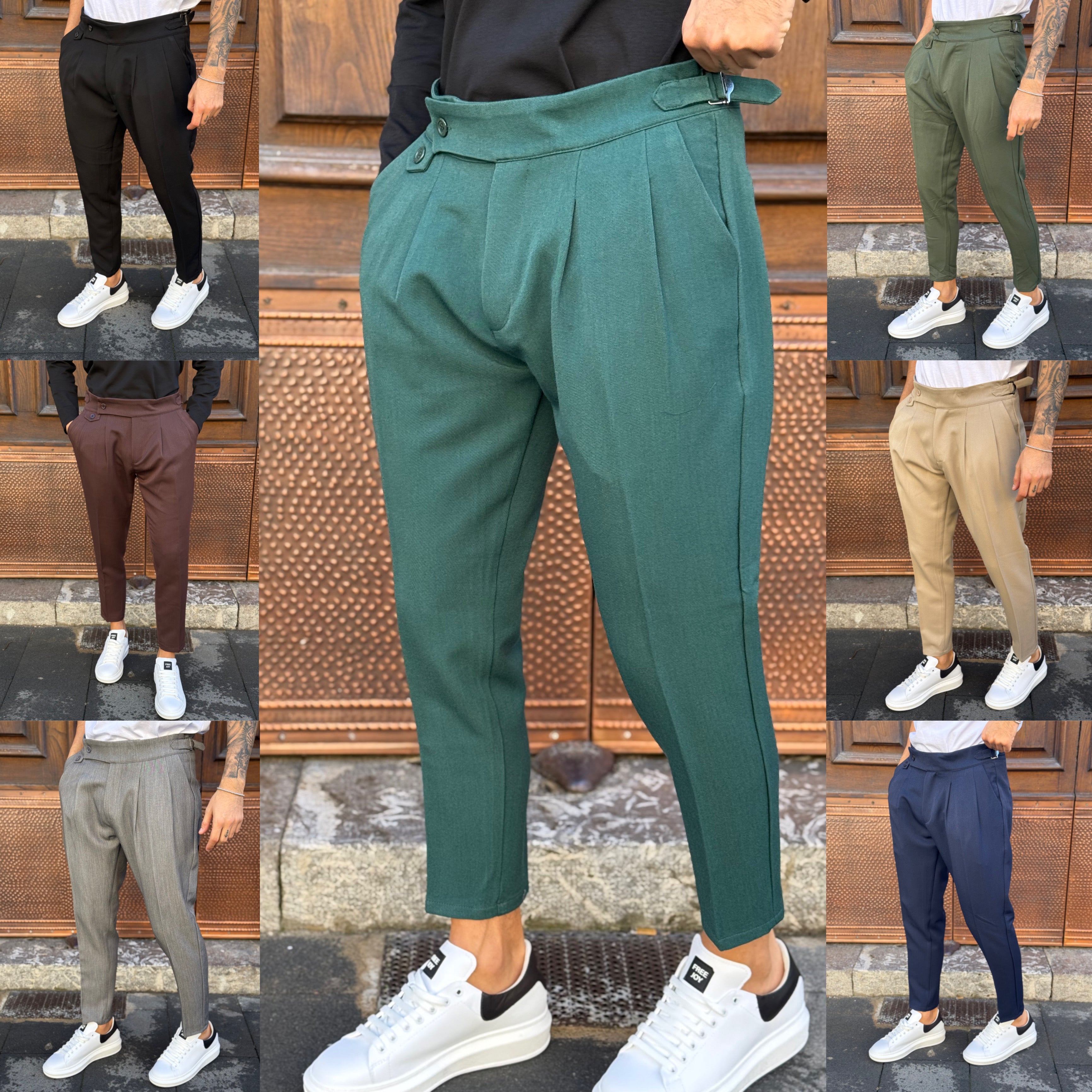 Il pantalone sartoriale vita alta, un bottonie con due fasce laterali e disponibile in vari colori, è perfetto per chi ama prendere rischi. Aggiungi un tocco audace al tuo guardaroba! Fatti notare con questo capo di alta qualità, che ti farà sentire sicuro e pronto ad affrontare ogni sfida con determinazione!