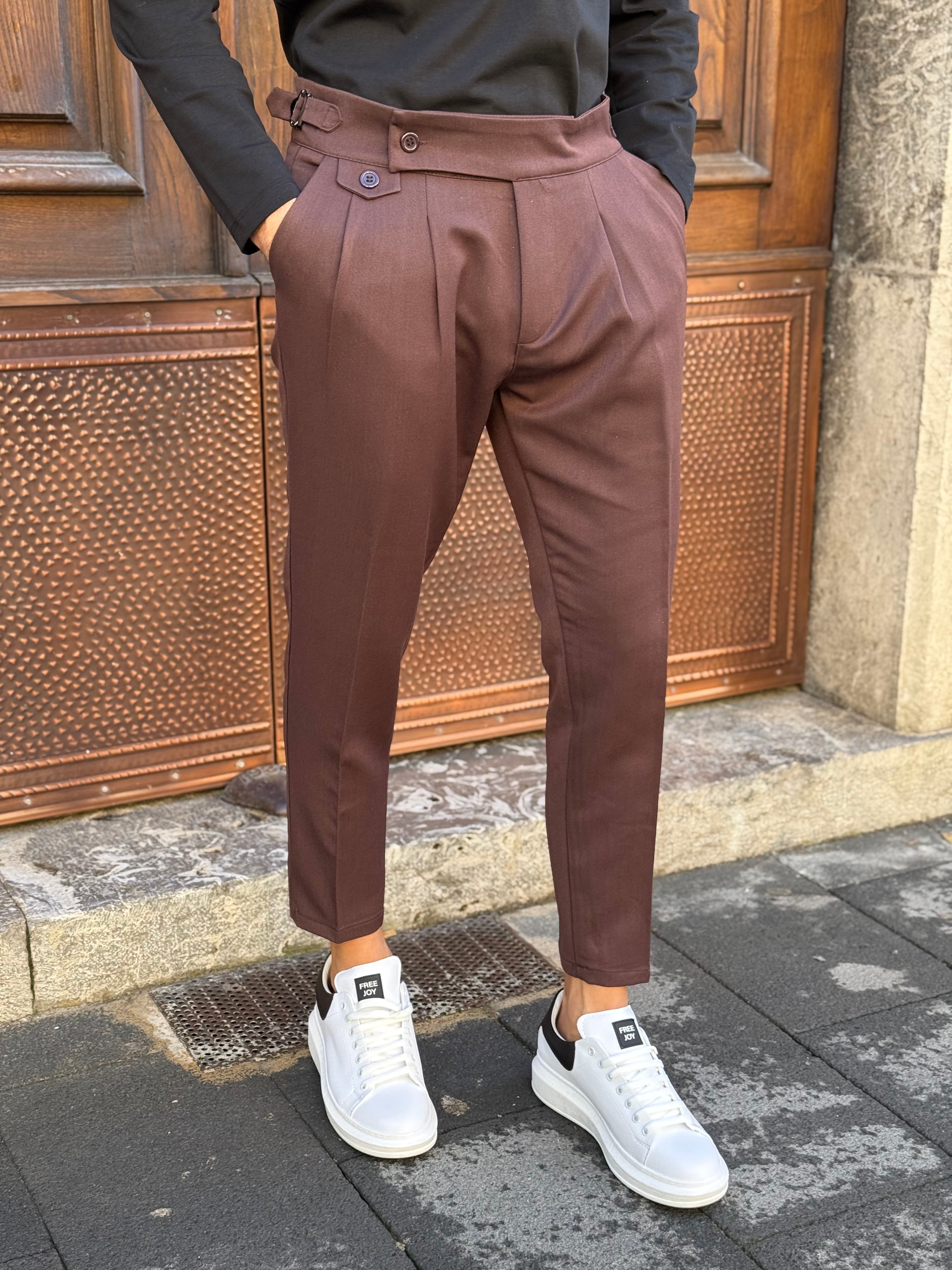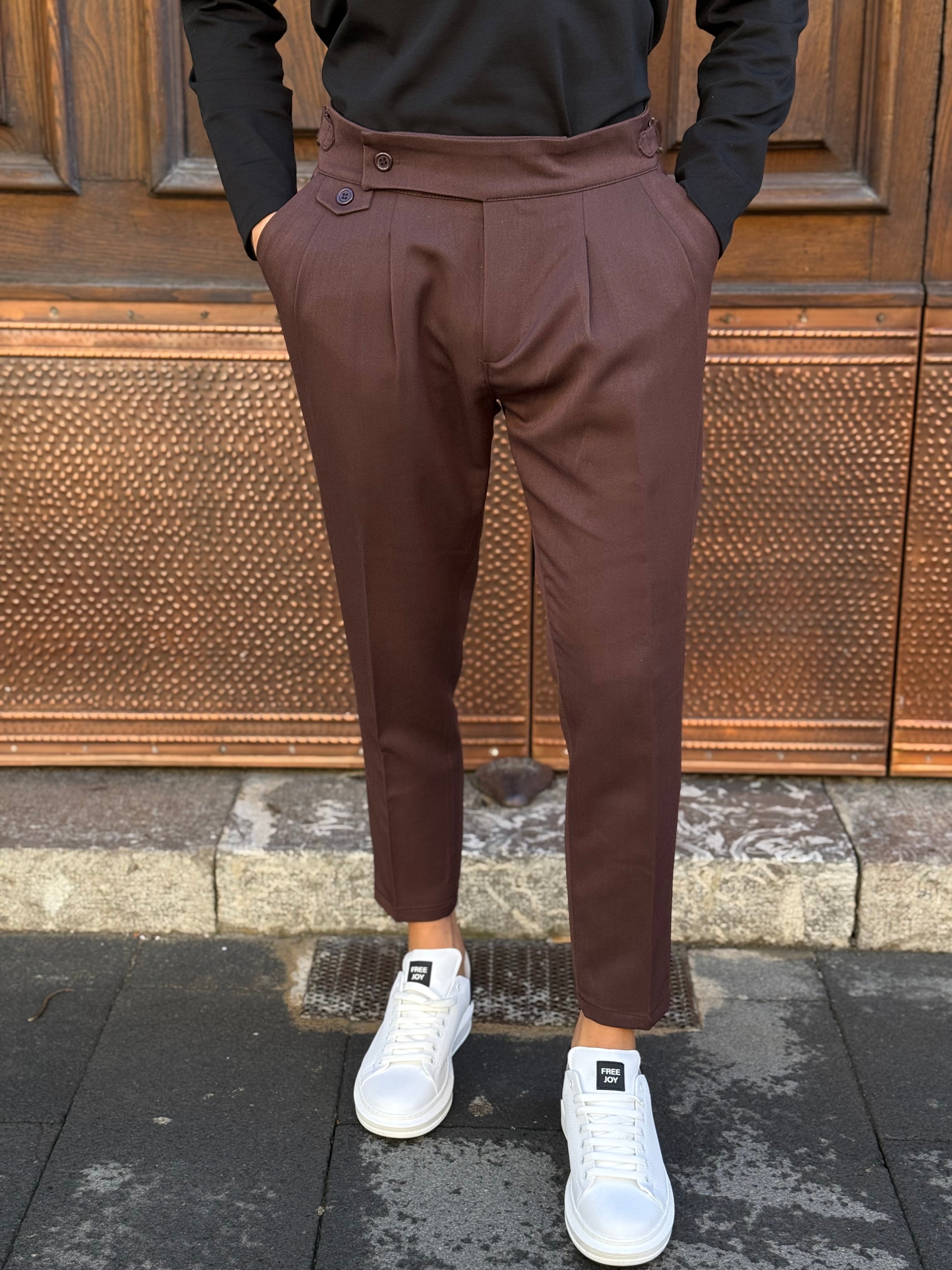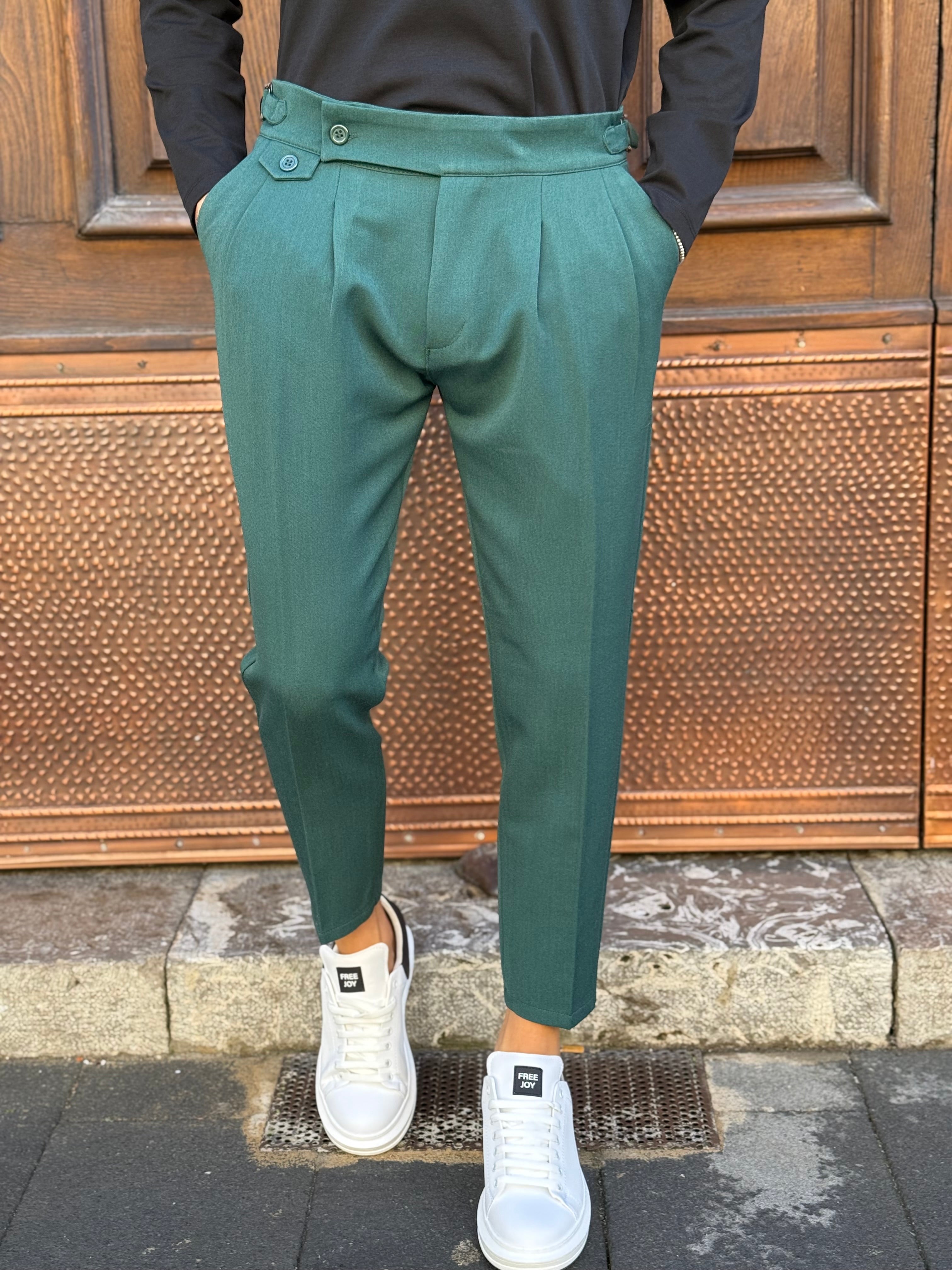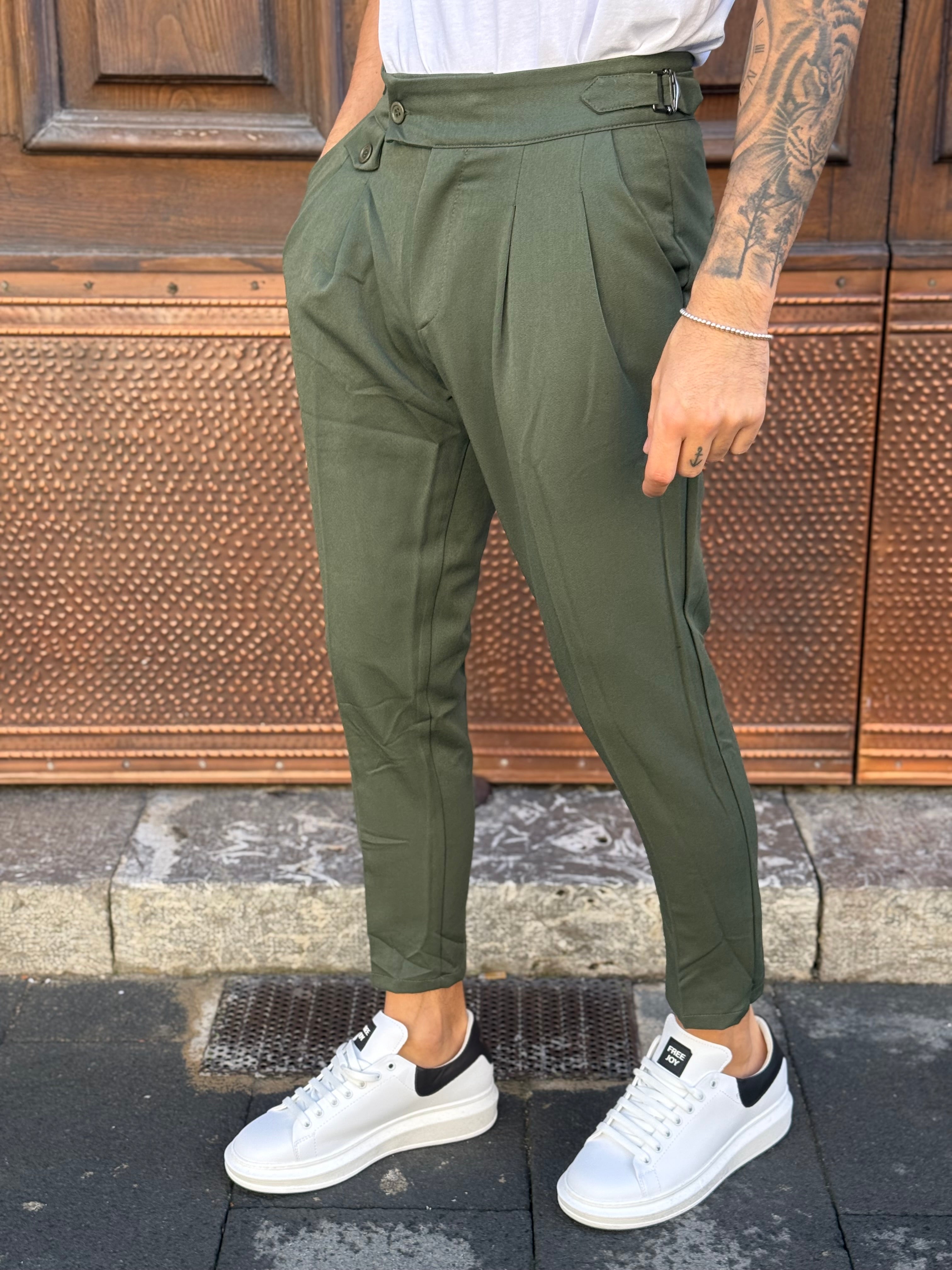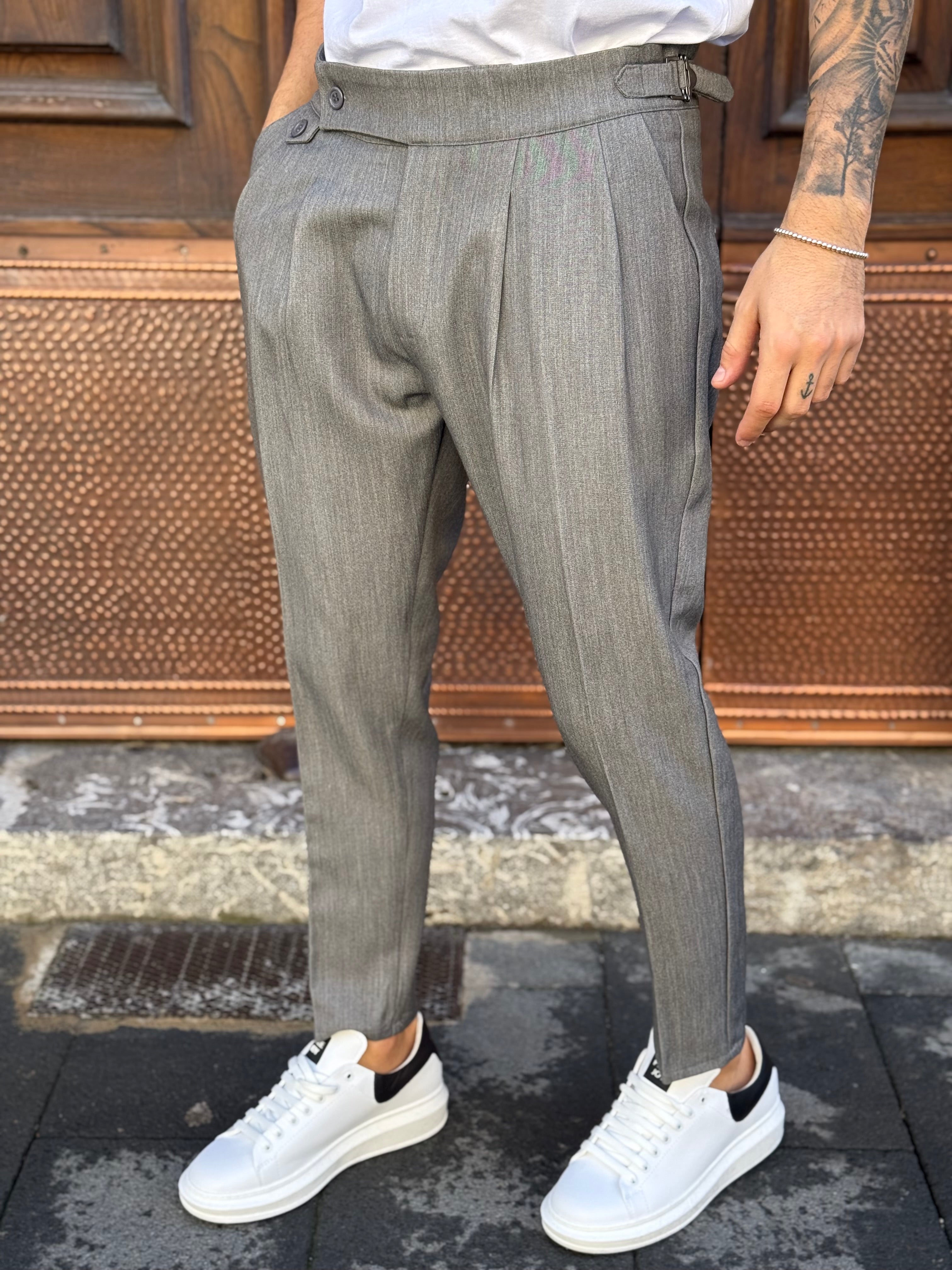 Il pantalone sartoriale vita alta, un bottonie con due fasce laterali e disponibile in vari colori, è perfetto per chi ama prendere rischi. Aggiungi un tocco audace al tuo guardaroba! Fatti notare con questo capo di alta qualità, che ti farà sentire sicuro e pronto ad affrontare ogni sfida con determinazione!