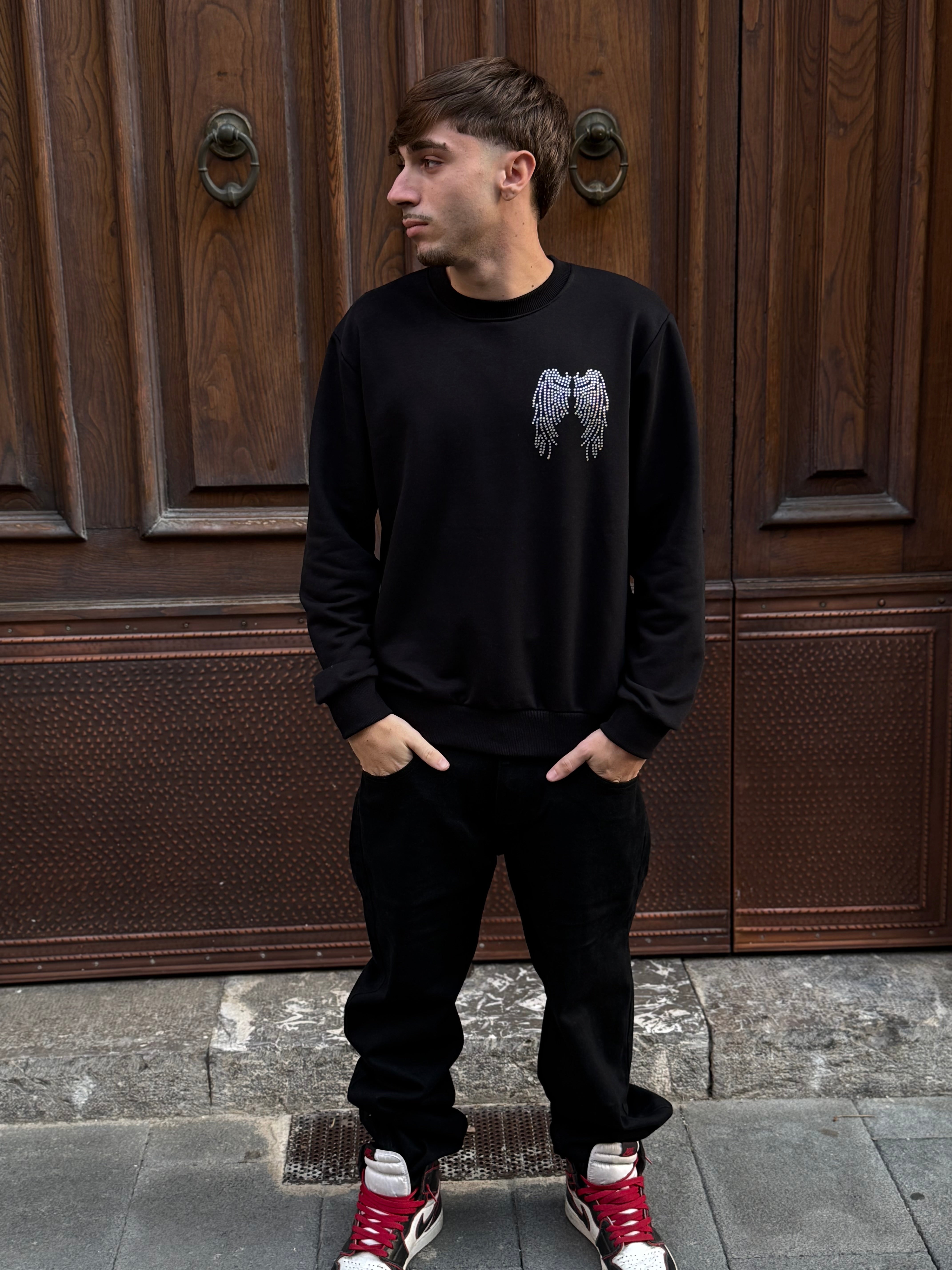 Felpa Girocollo Nera logo spalle dark angel