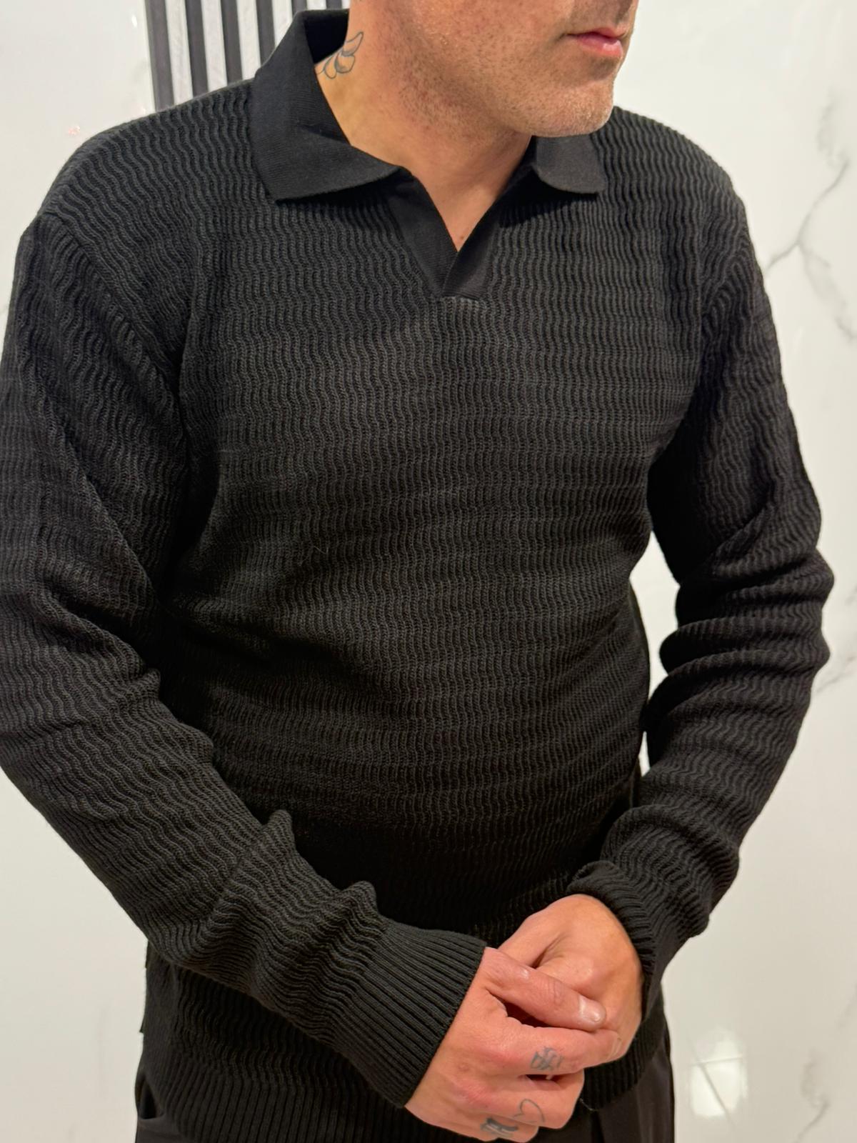 polo manica lunga nero mod onda