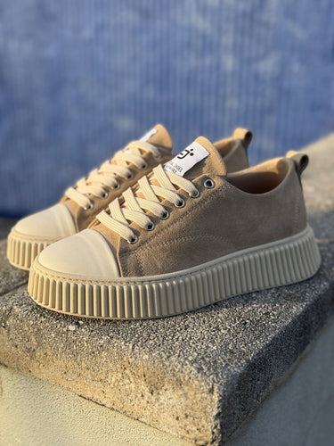 sneakers sportiva canvas beige camoscio fj