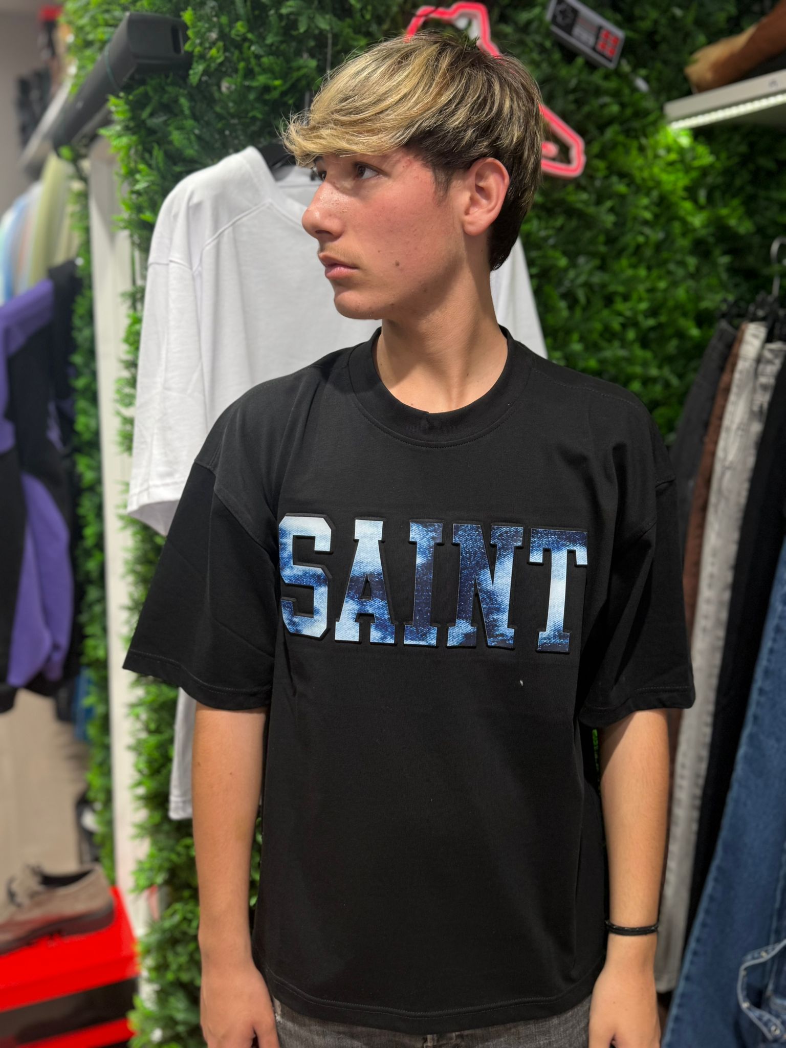 t shirt saint brand nera logo 3d blu
